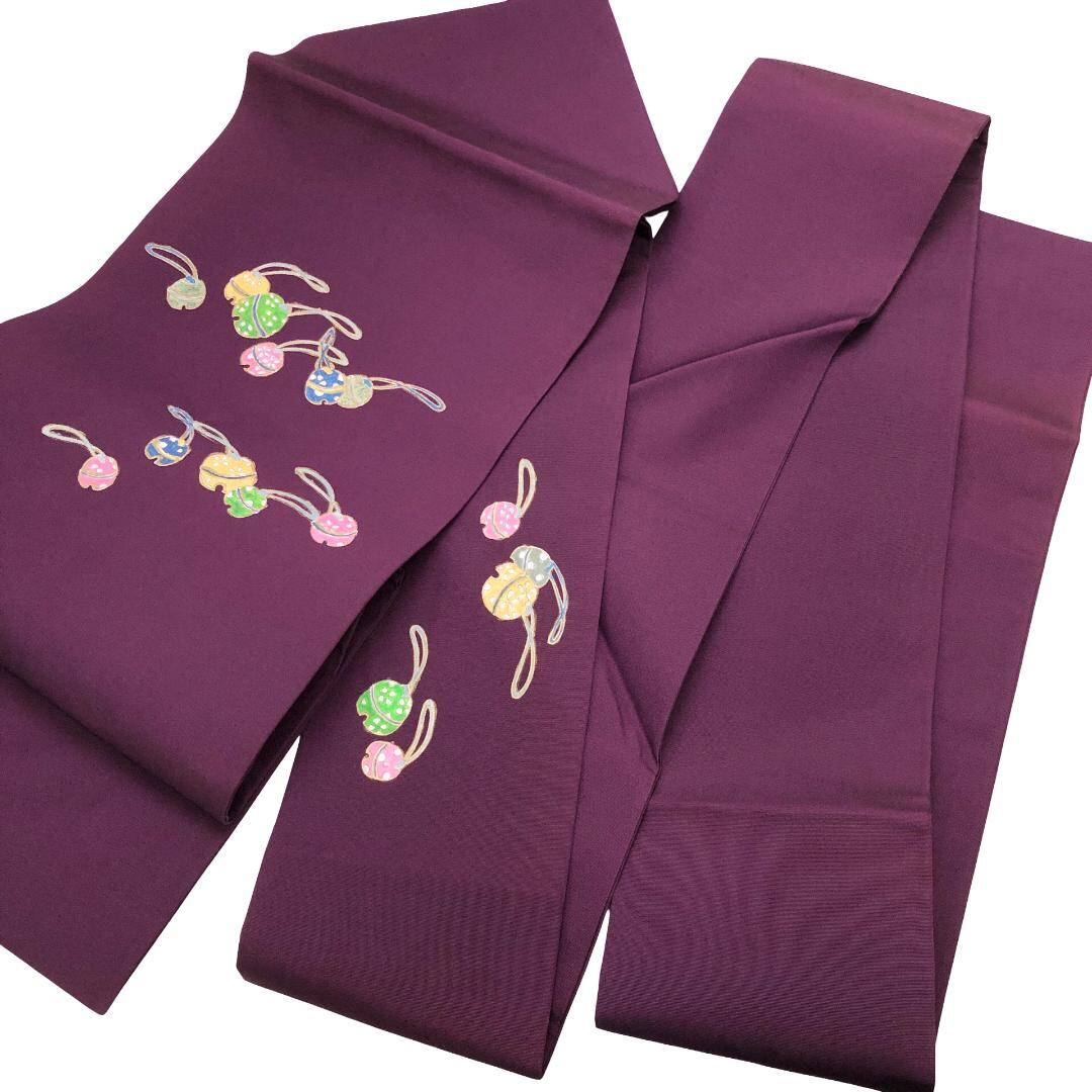 似紫色のお色味に色彩多様な鈴柄がデザインされた素敵なお品でございます。