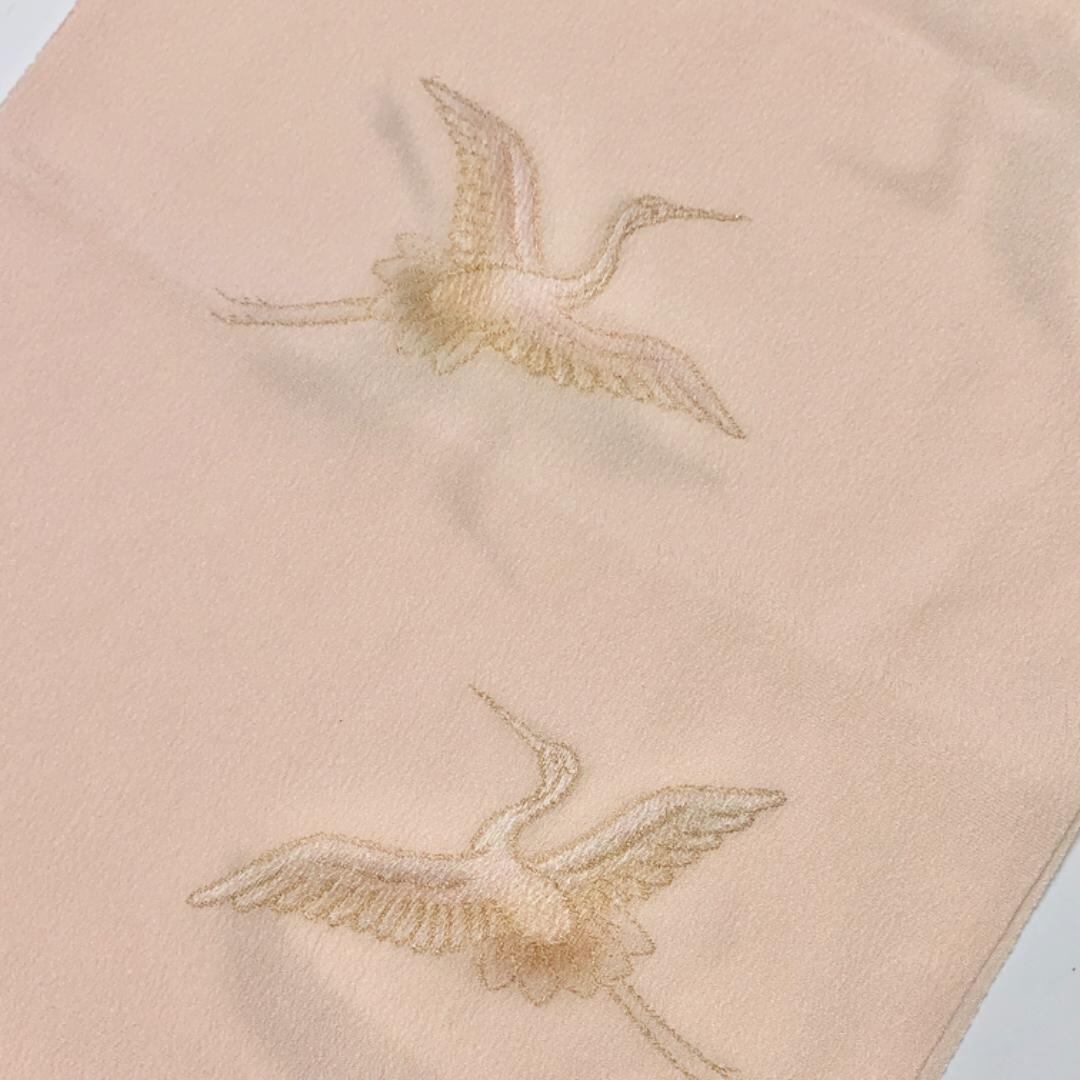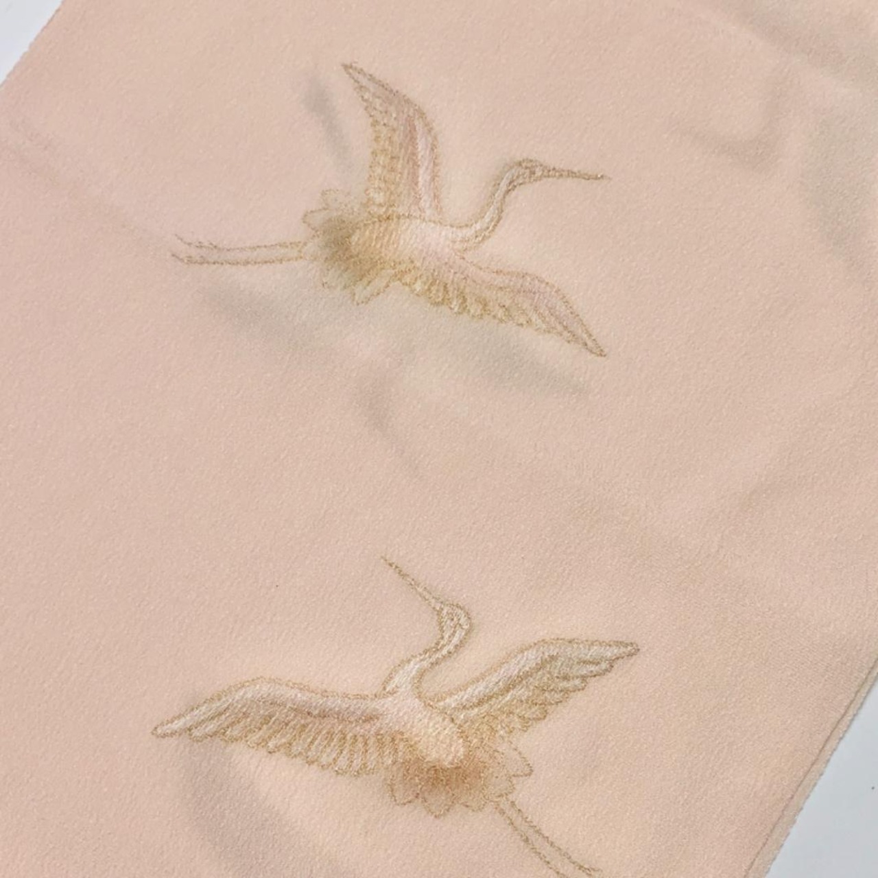 乙女色のお色味に鶴がデザインされた素敵なお品でございます。
