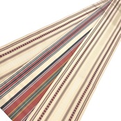 薄卵色のお色味に献上柄、縦縞模様がデザインされた素敵な柄裄のお品でございます。