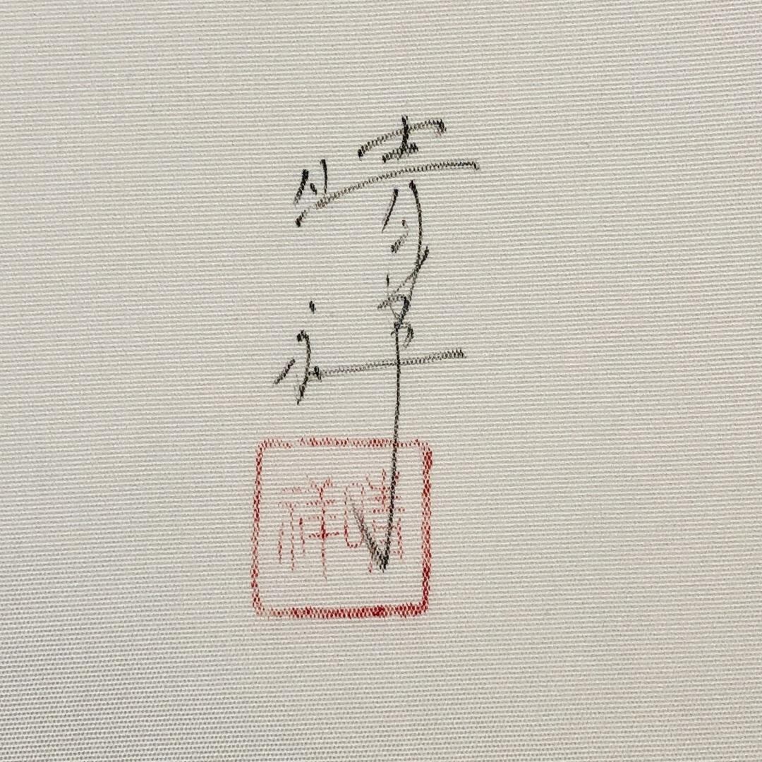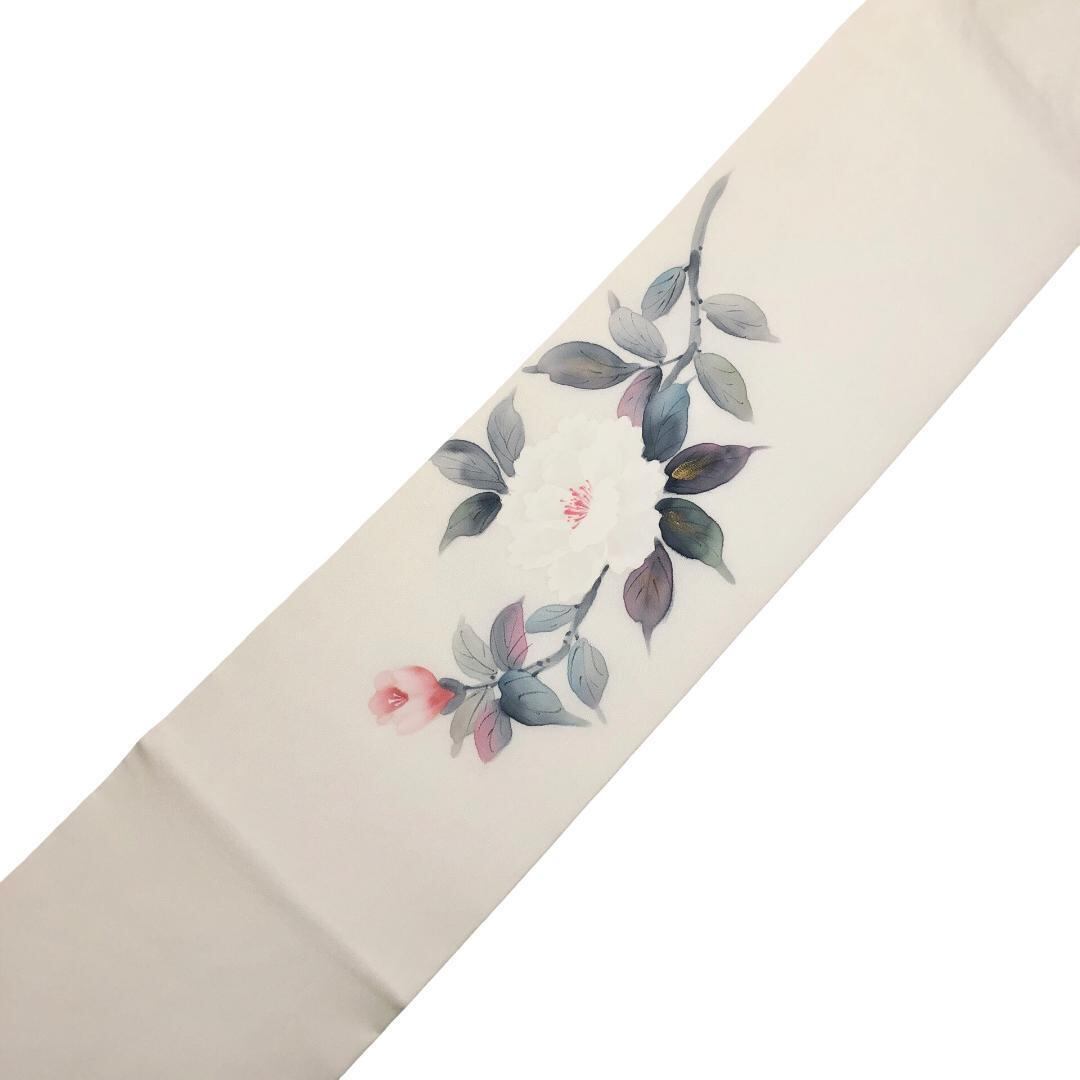 乳白色の上品なお色味の塩瀬に手描きの花模様の柄裄がデザインされた素敵なお品でございます。