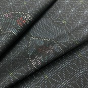藍泥染の雰囲気の良いお色味に麻の葉模様、地紙に花柄がデザインされた素敵な柄裄のお品でございます。