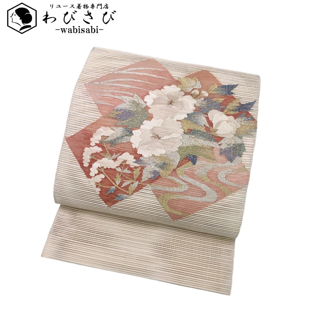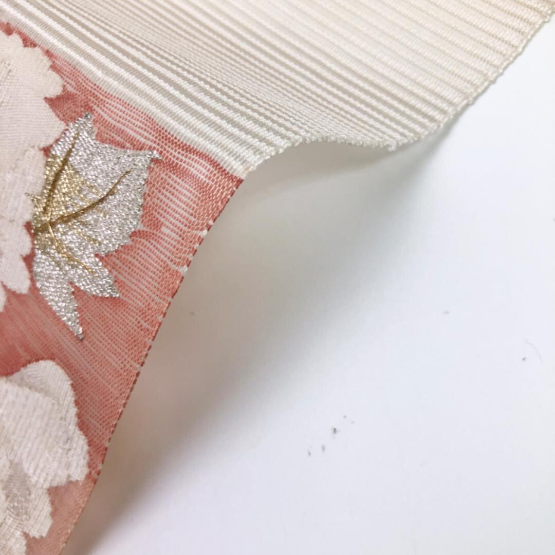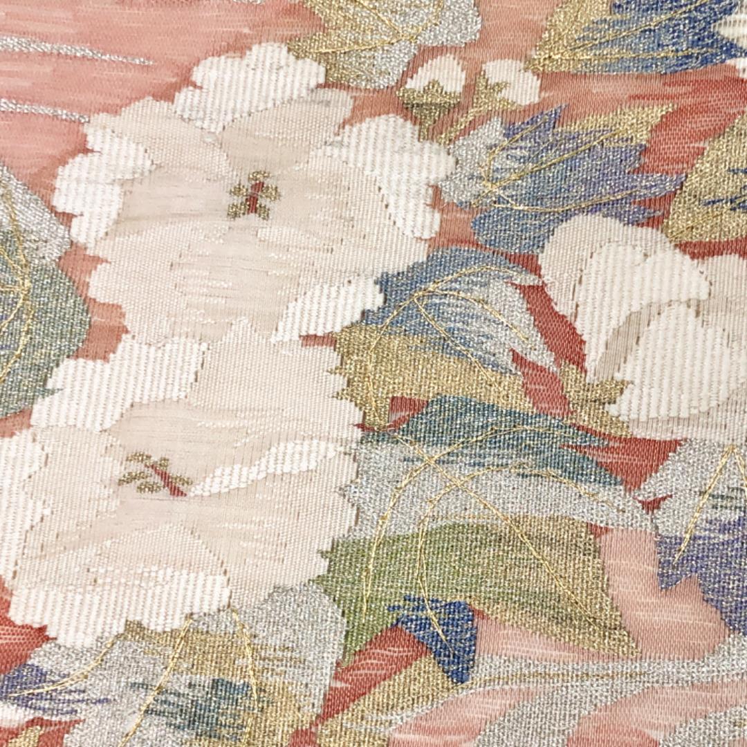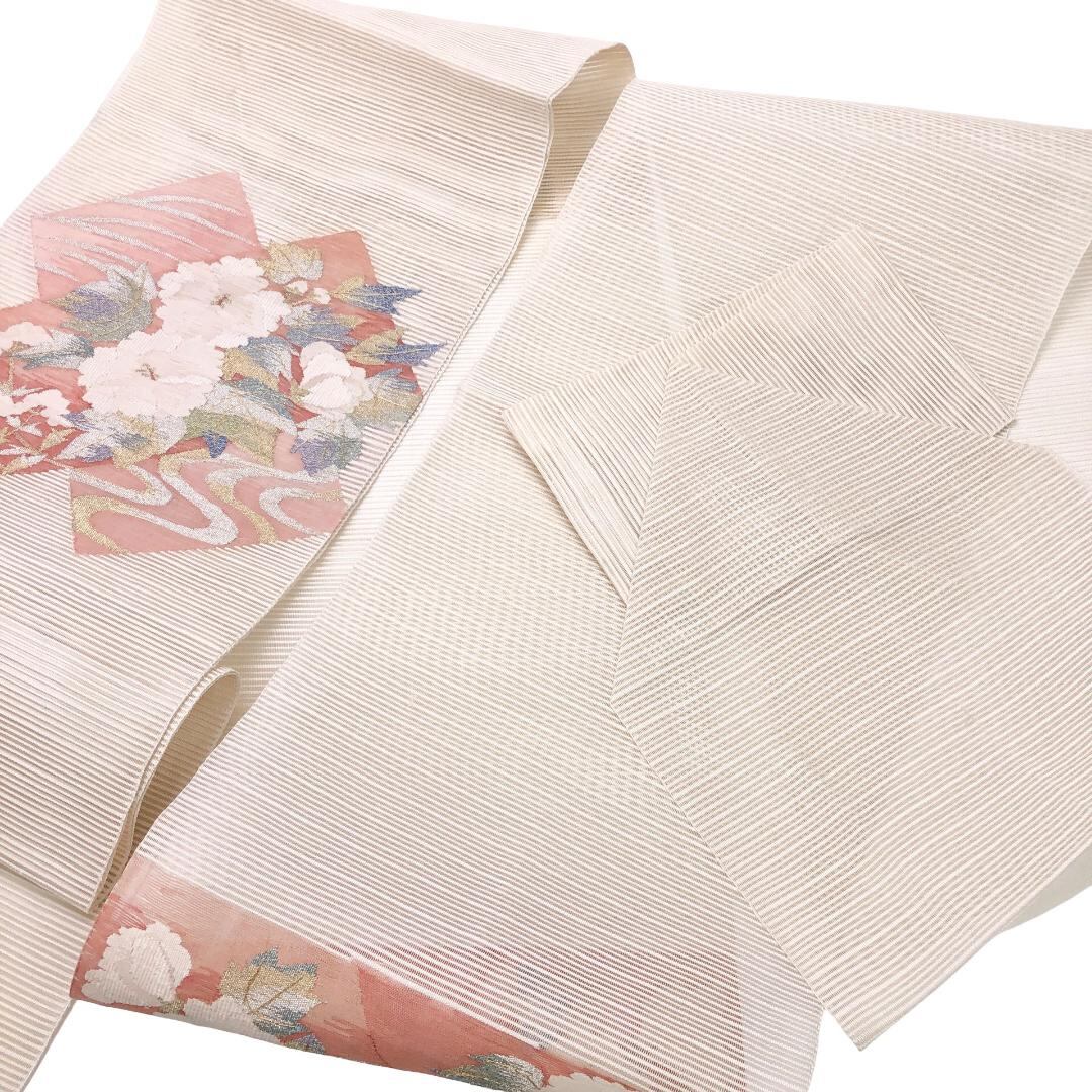 乳白色の上品なお色味に花模様の柄裄がデザインされた素敵なお品でございます。