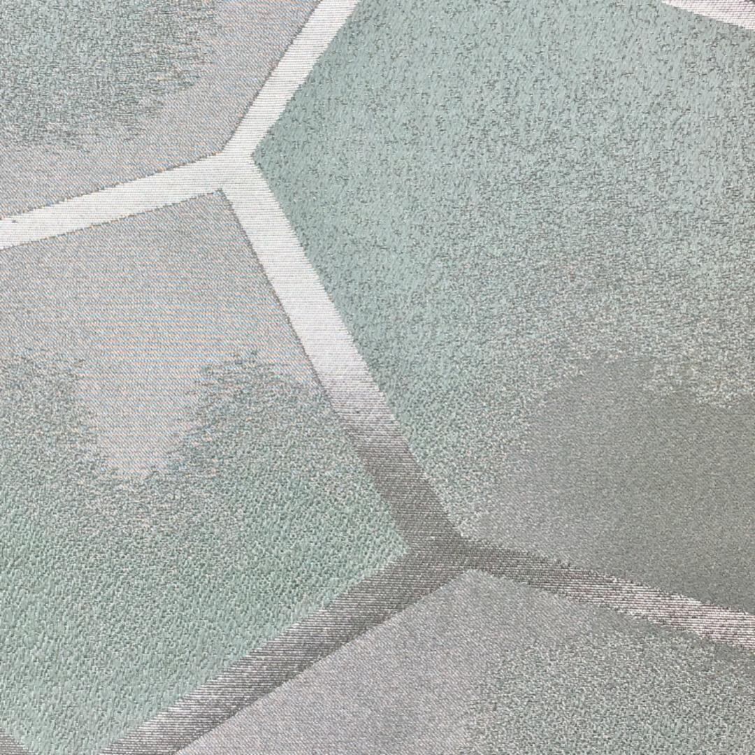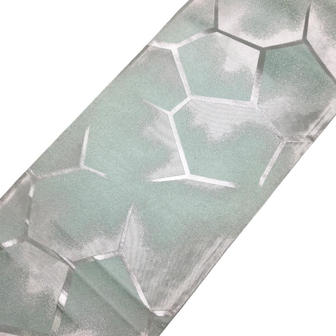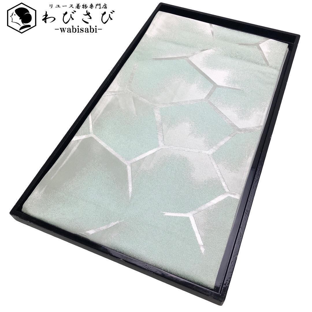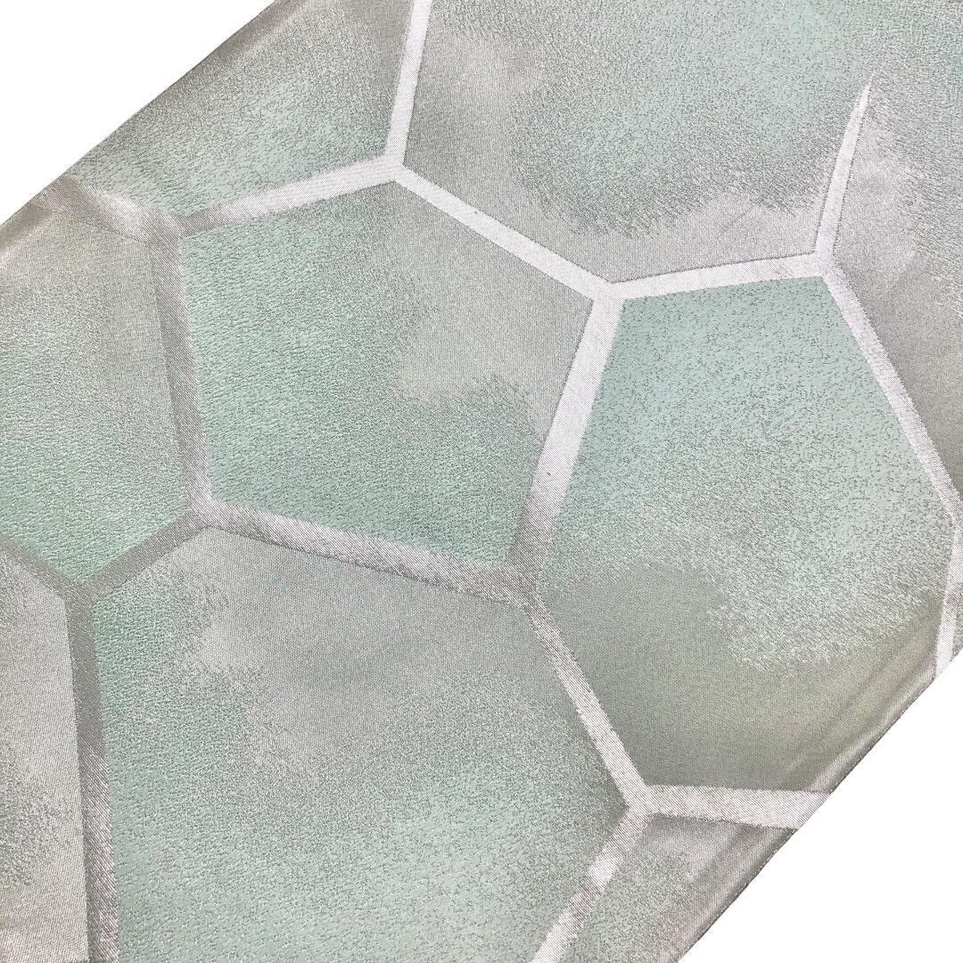 薄浅葱色ベースの優しいお色味に亀甲模様がデザインされた素敵なお品でございます。