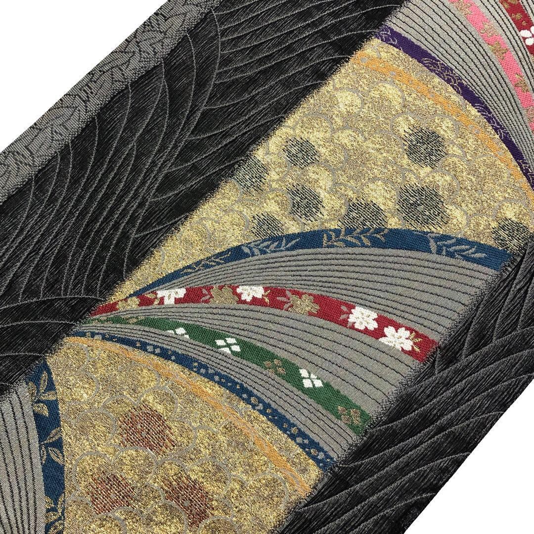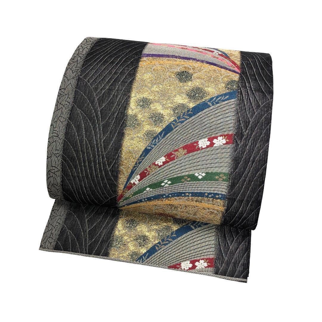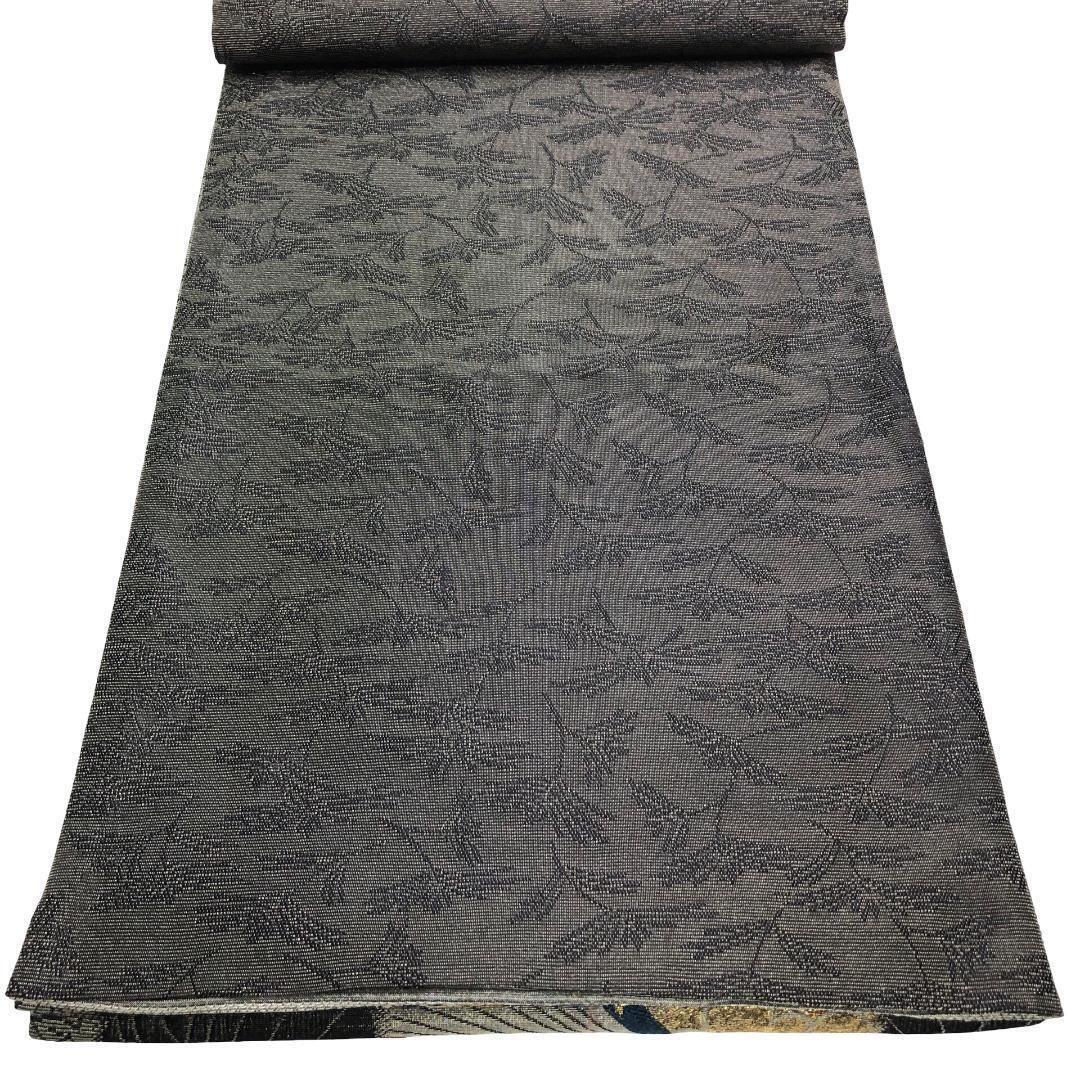 少し透け感のある黒色ベースのお色味に金通し、縦柄花模様の柄裄がデザインされた素敵なお品でございます。