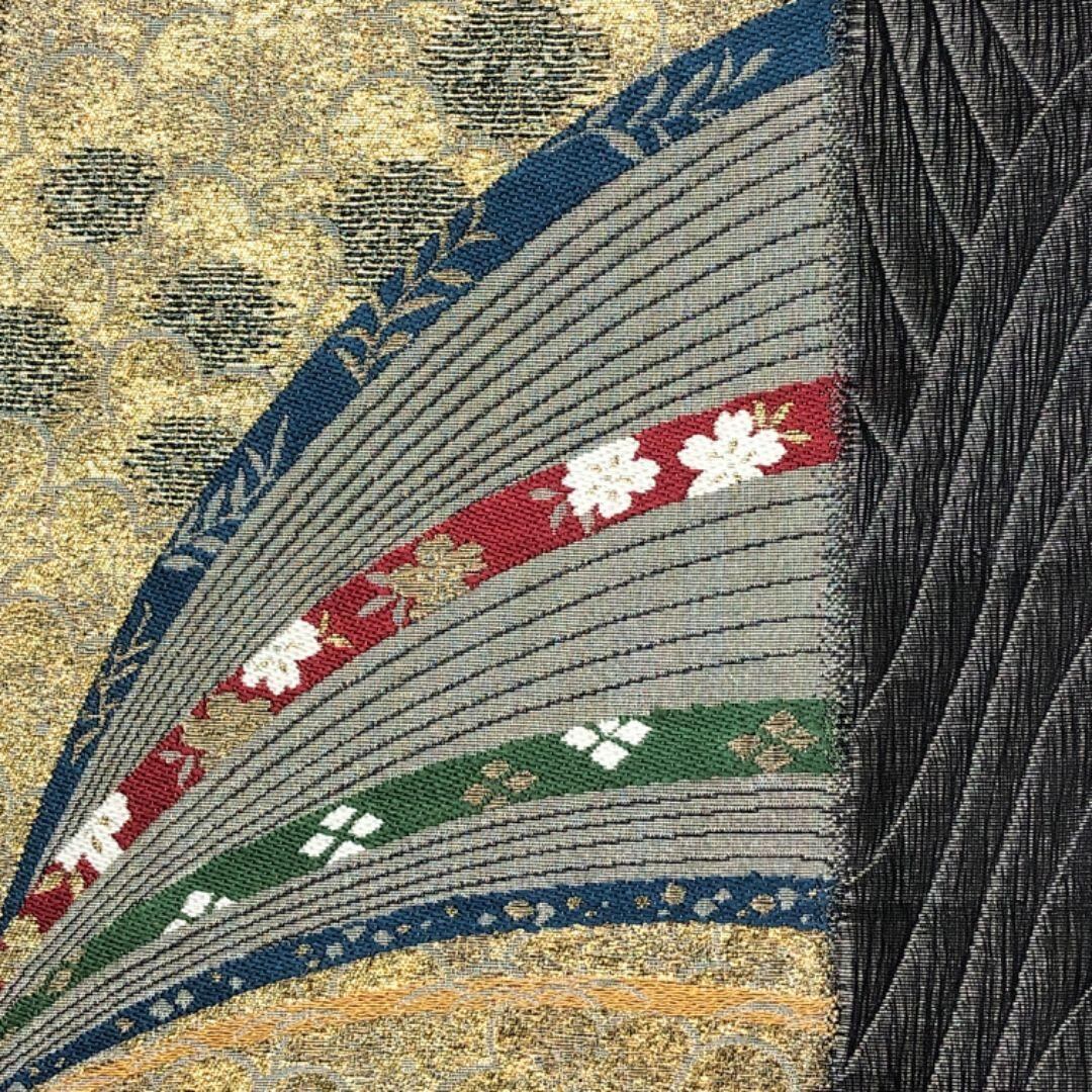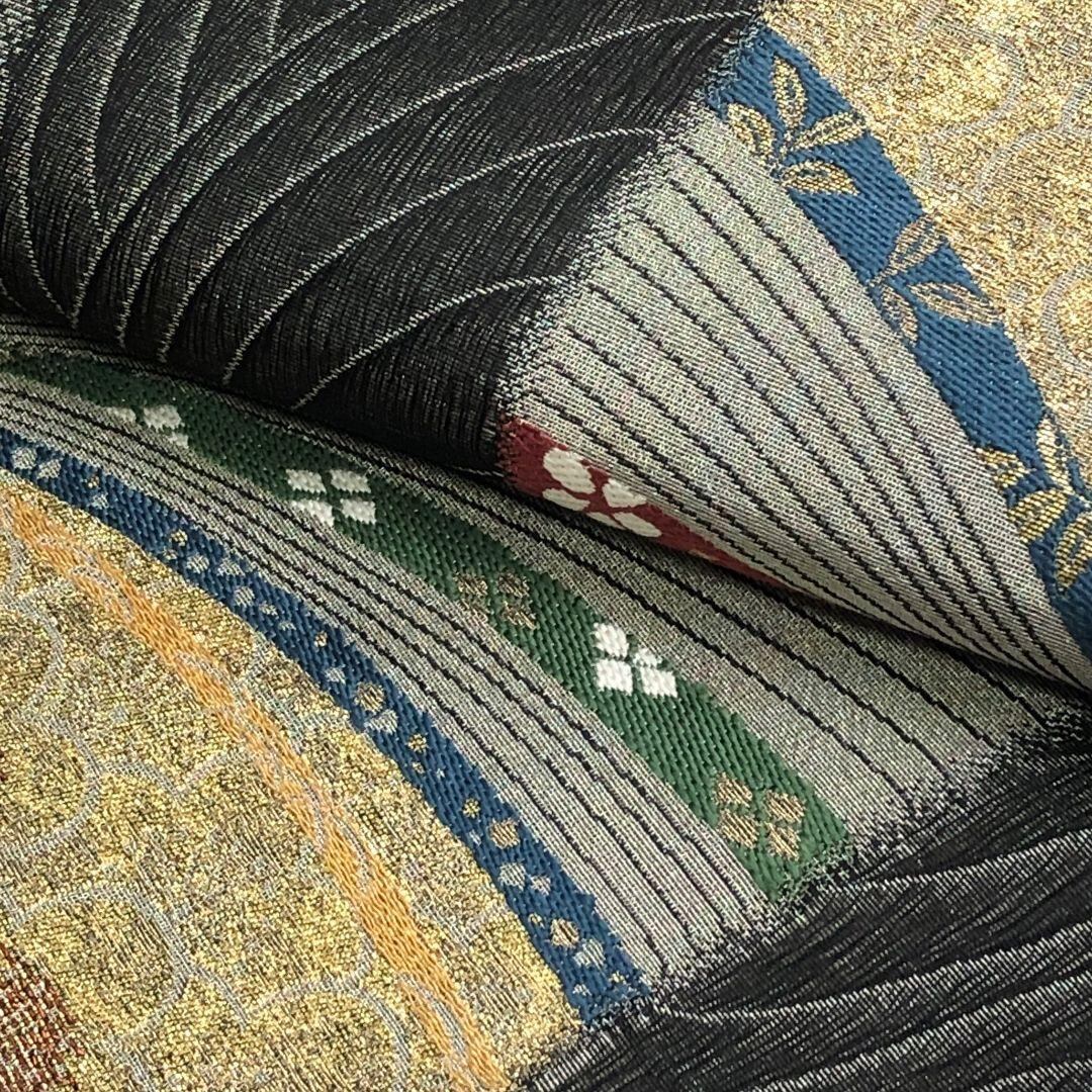 袋帯 縦柄花模様 金通し 黒色 O-5327 着物 きもの kimono 和服 和装 中古 リサイクル着物 【送料無料】