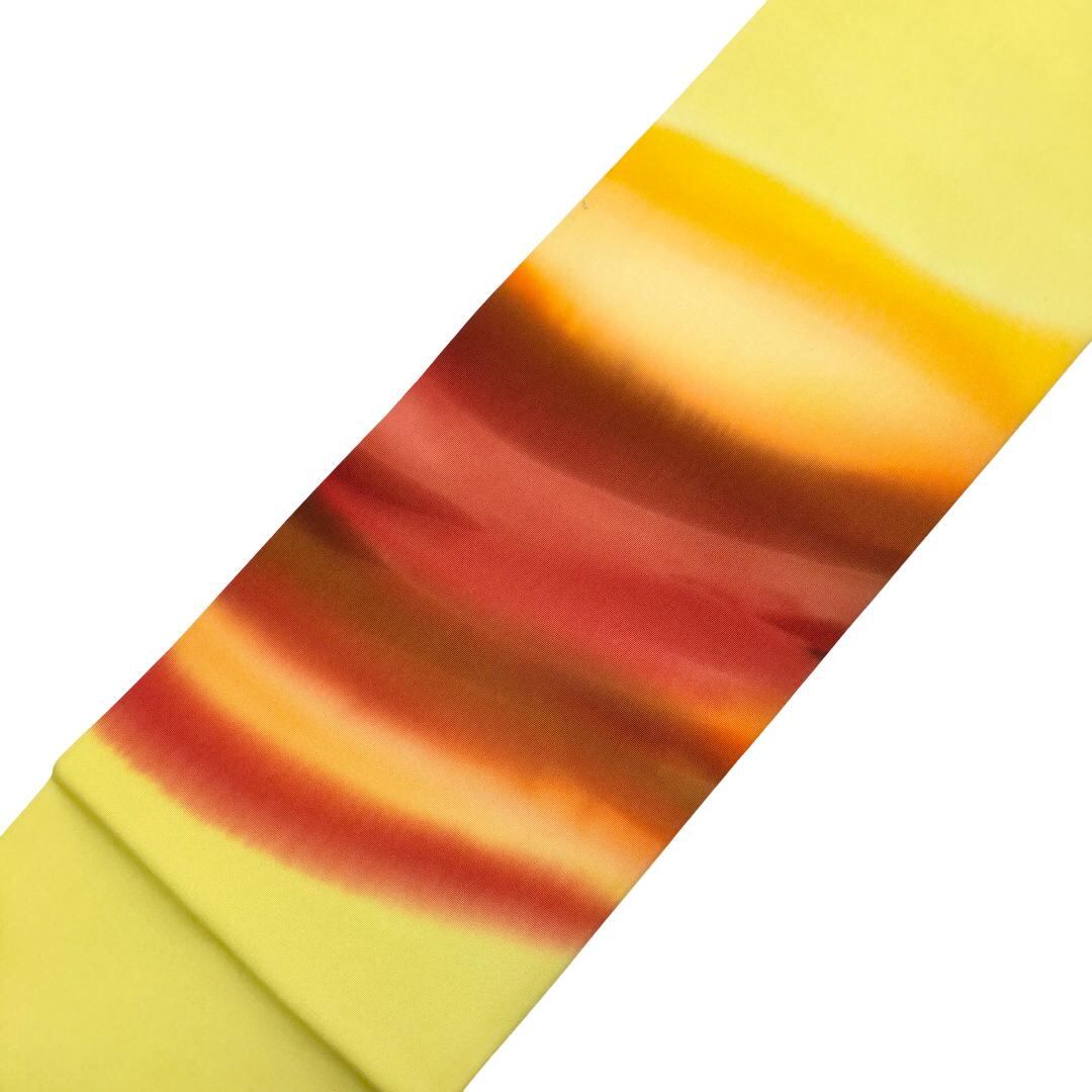 名古屋帯 斉藤三才 塩瀬 暈し模様 檸檬色 O-5407 着物 きもの kimono 和服 和装 中古 リサイクル着物 【送料無料】