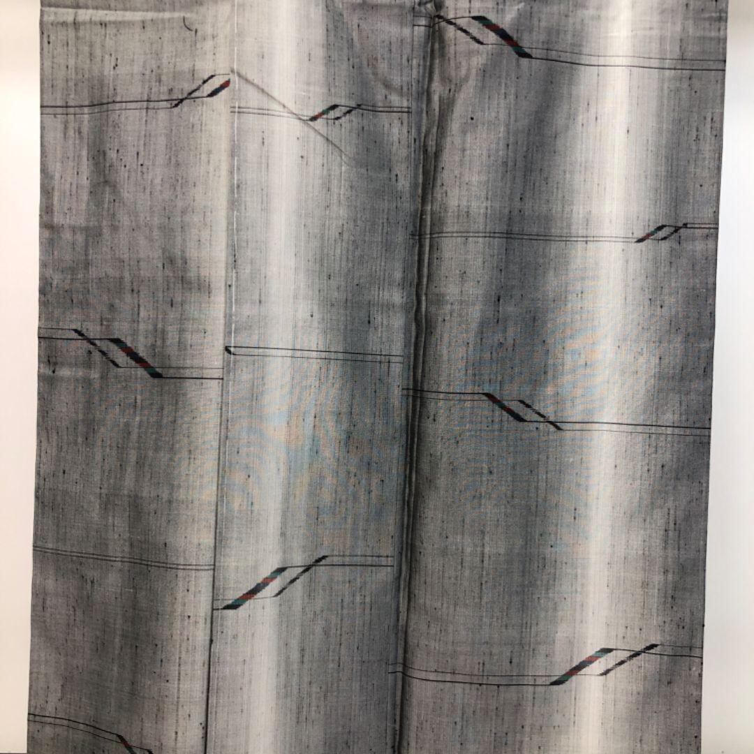 紬着物 縦縞抽象模様 灰色 しつけ糸 K-5168 着物 きもの kimono 和服 和装 中古 リサイクル着物 【送料無料】
