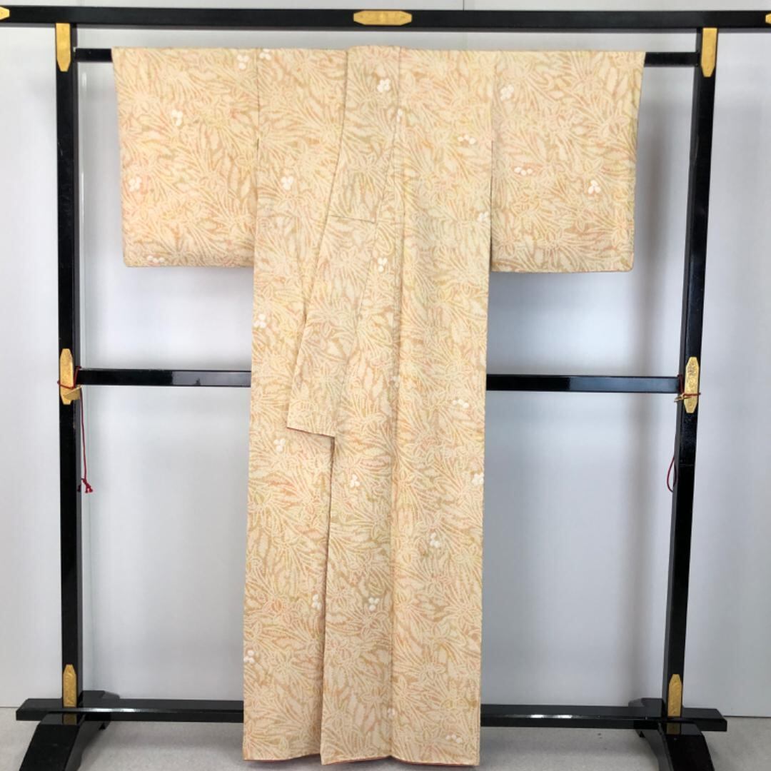 薄梅谷渋色ベースのお色味に菖蒲の花模様がデザインされた雰囲気の良い素敵なお品でございます。