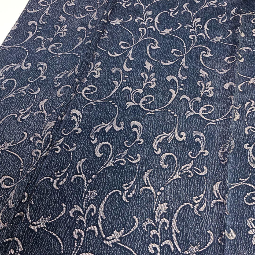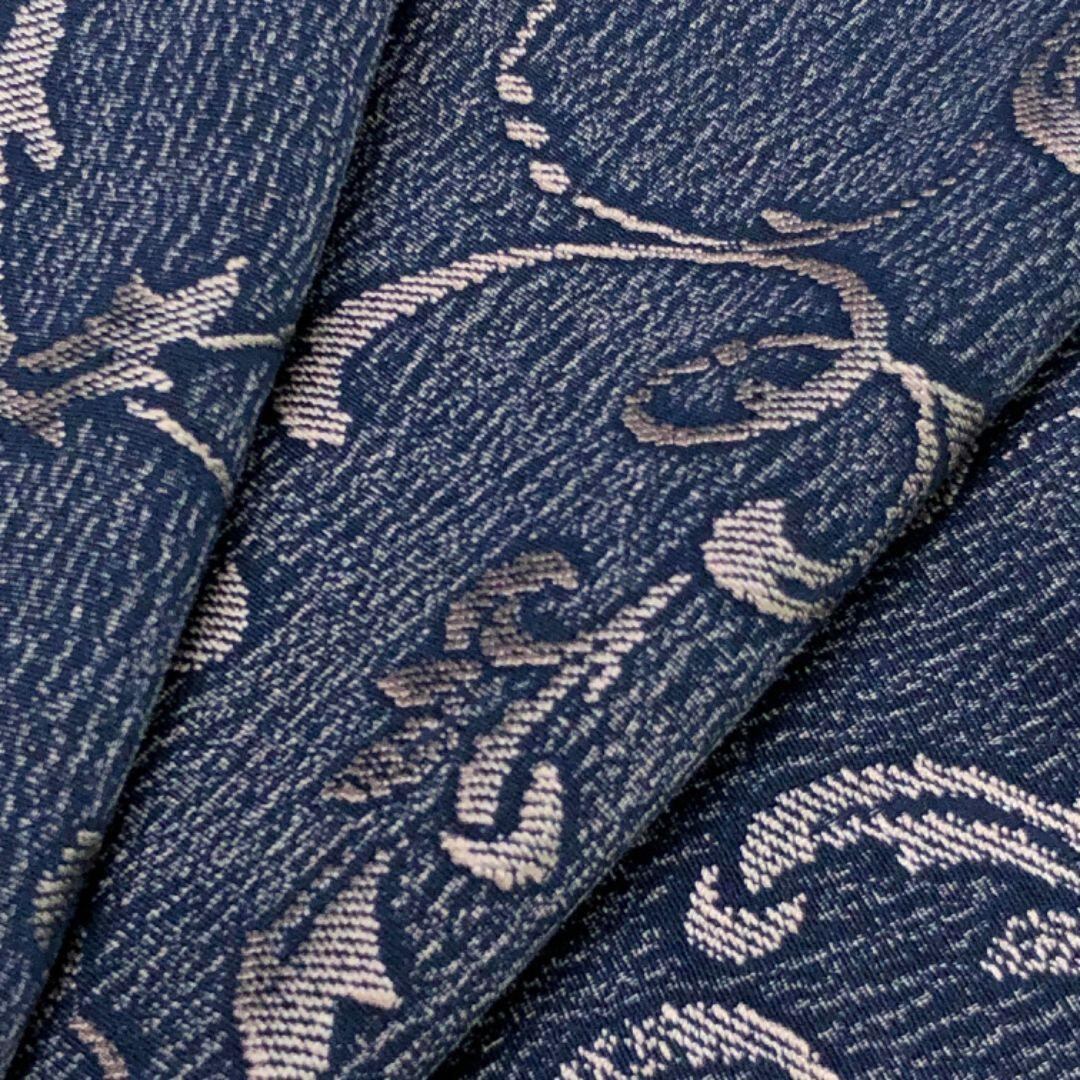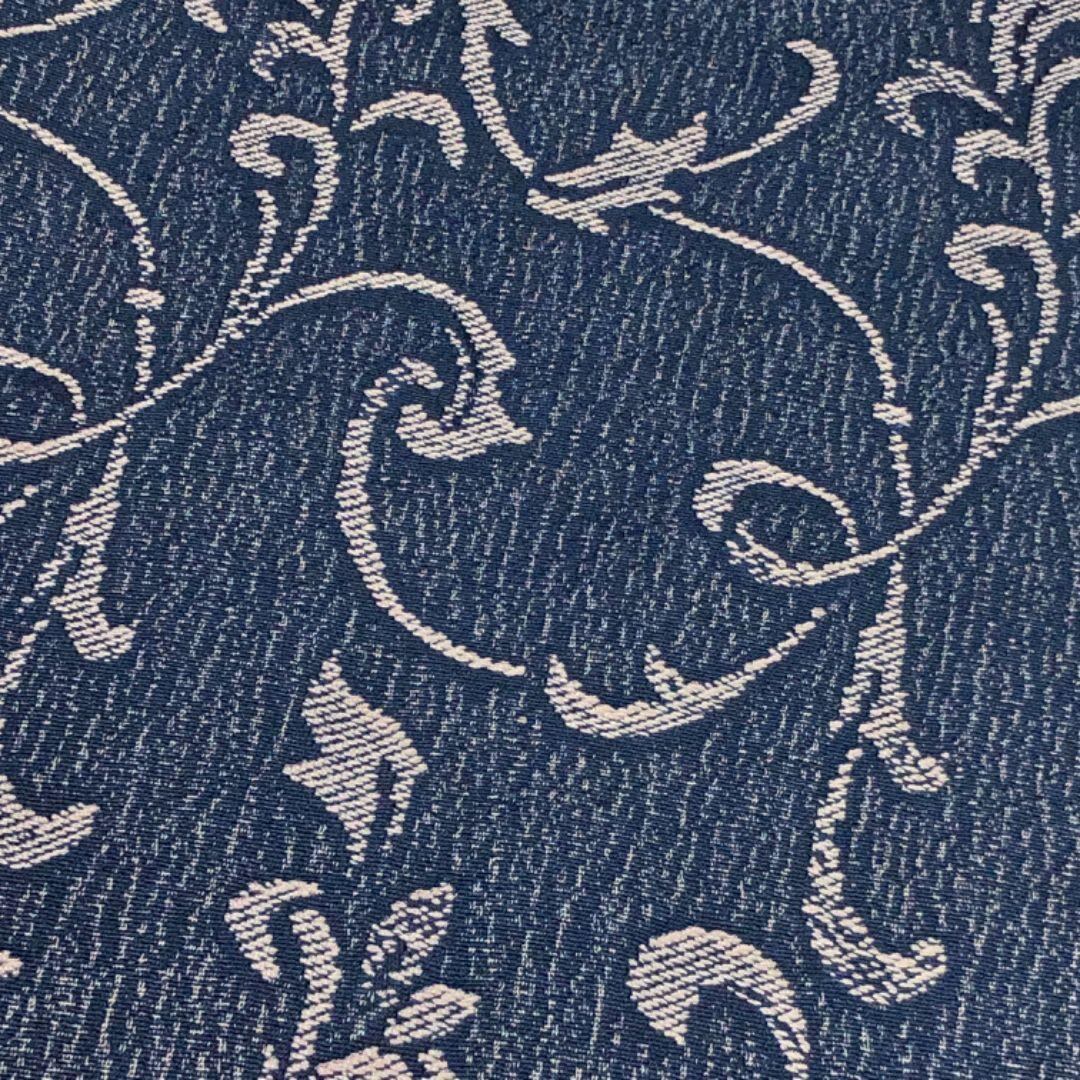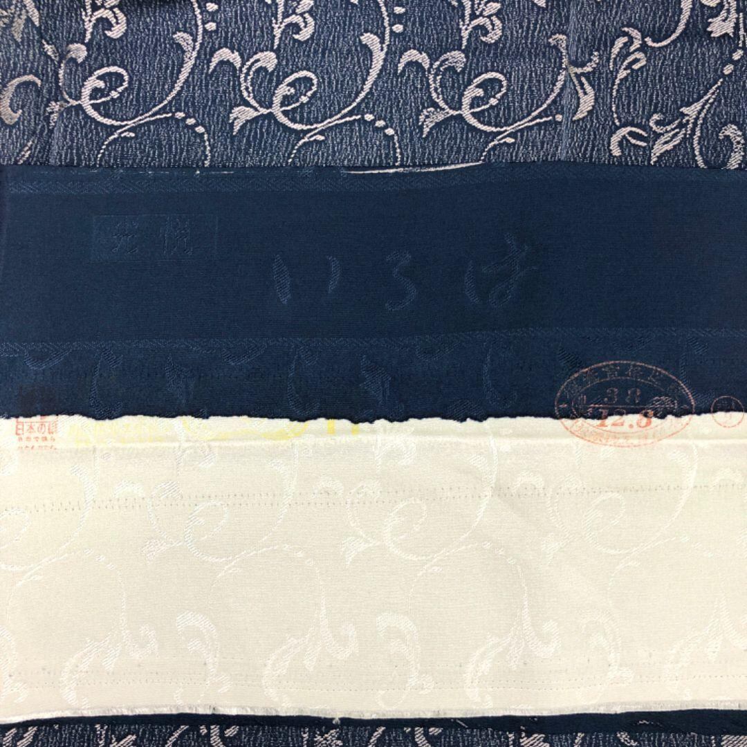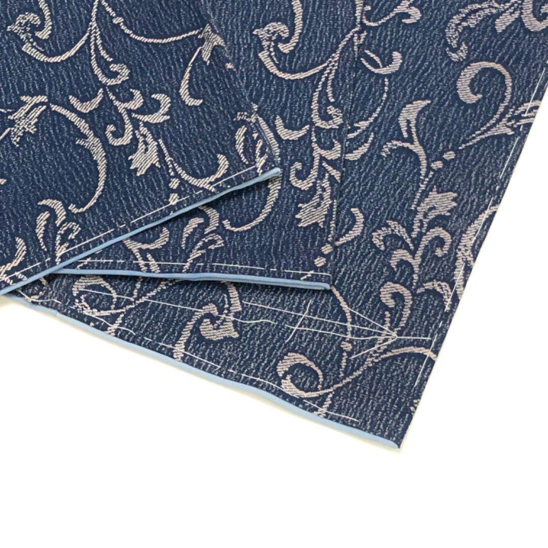 紺藍色のお色味に花唐草模様がデザインされた素敵な柄裄のお品でございます。