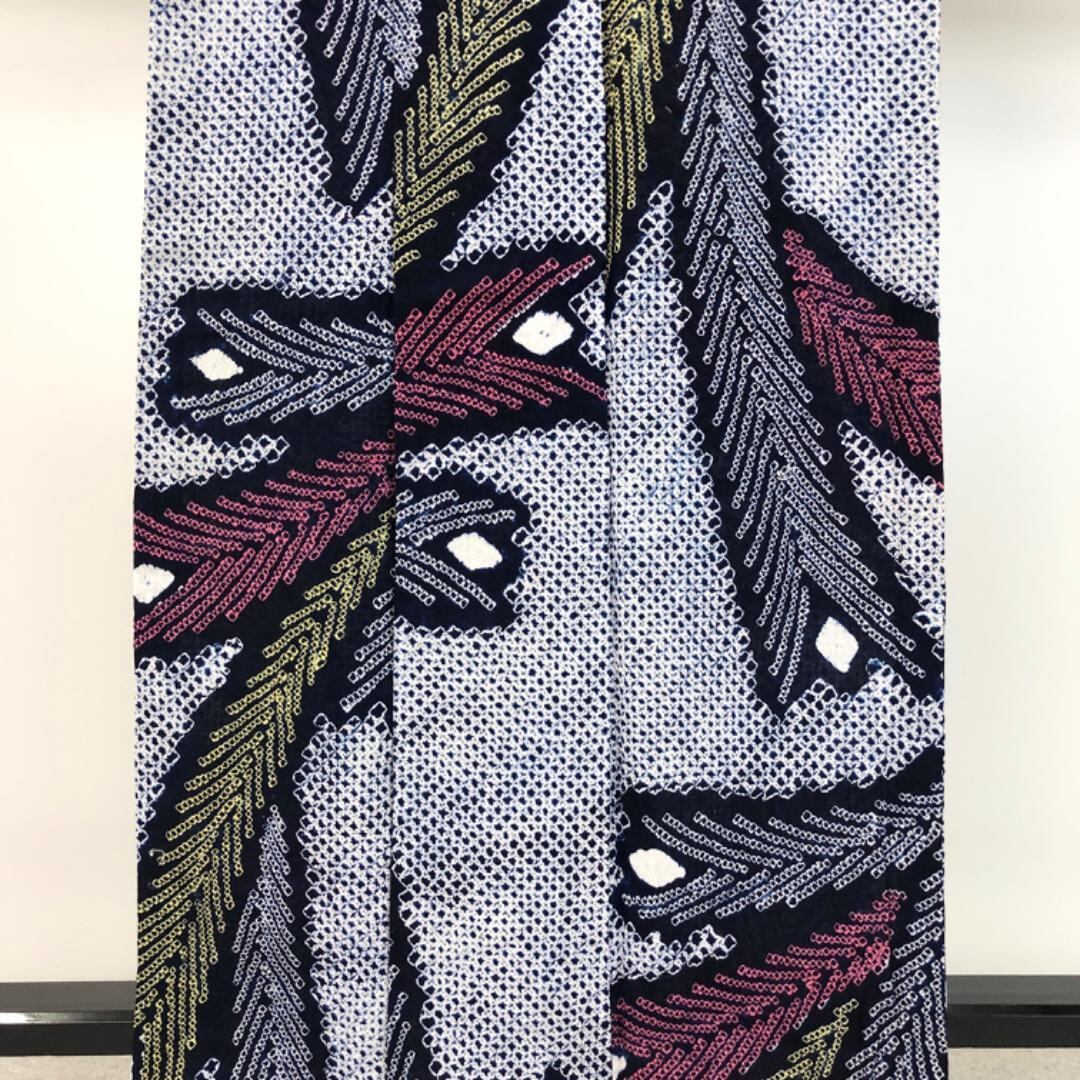 藍色のお色味に葉模様の柄裄がデザインされた素敵なお品でございます。