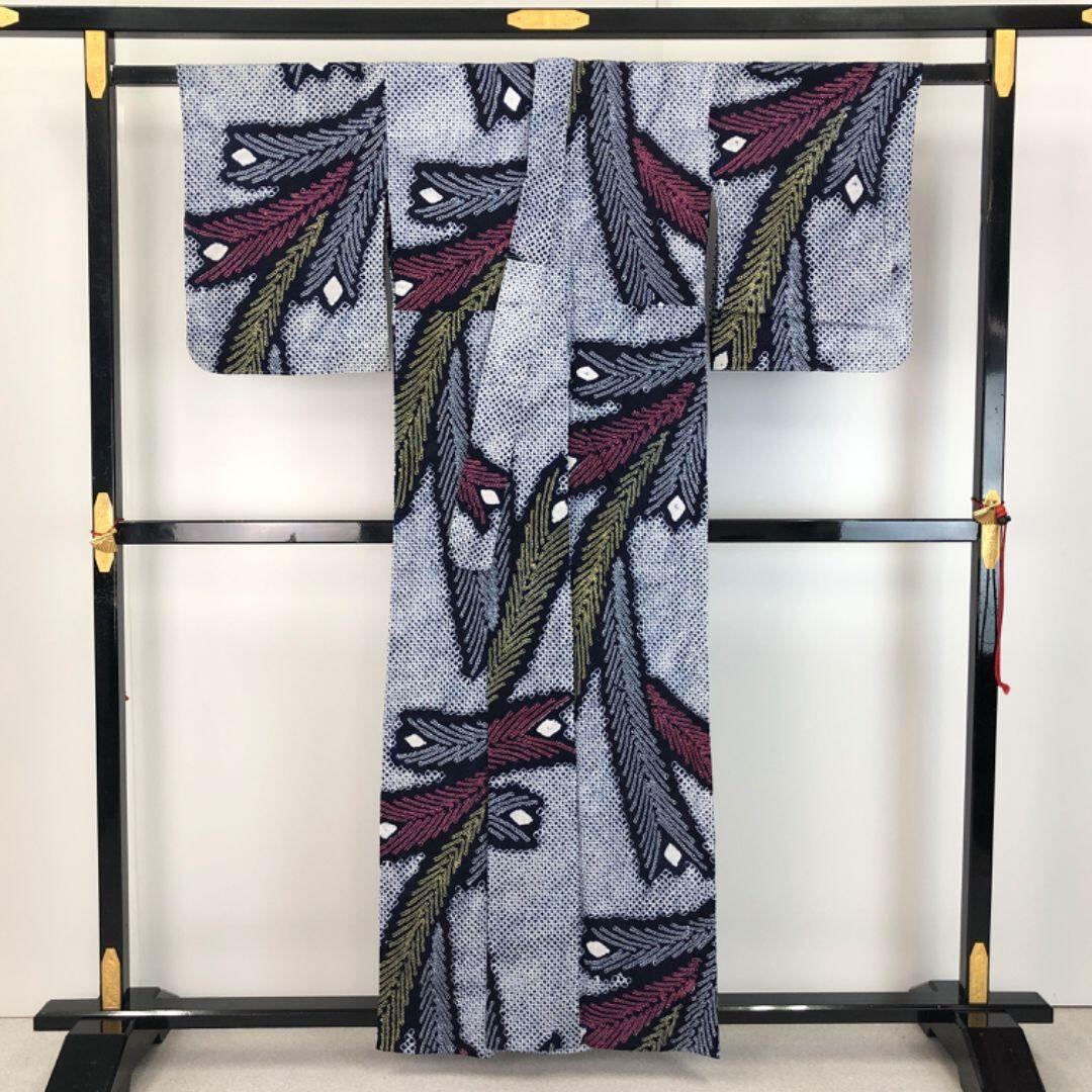 夏着物 浴衣 有松鳴海本絞り 葉模様 藍色 K-5214 着物 きもの kimono 和服 和装 中古 リサイクル着物 【送料無料】