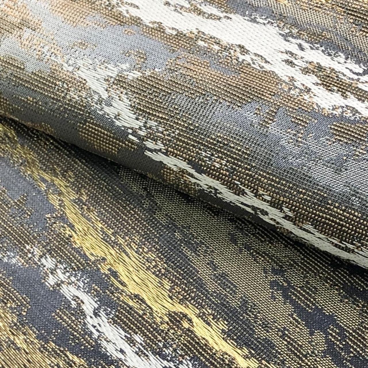 落ち着いた色彩の金糸が使われた美しい霞模様がデザインされた素敵な柄裄のお品でございます。