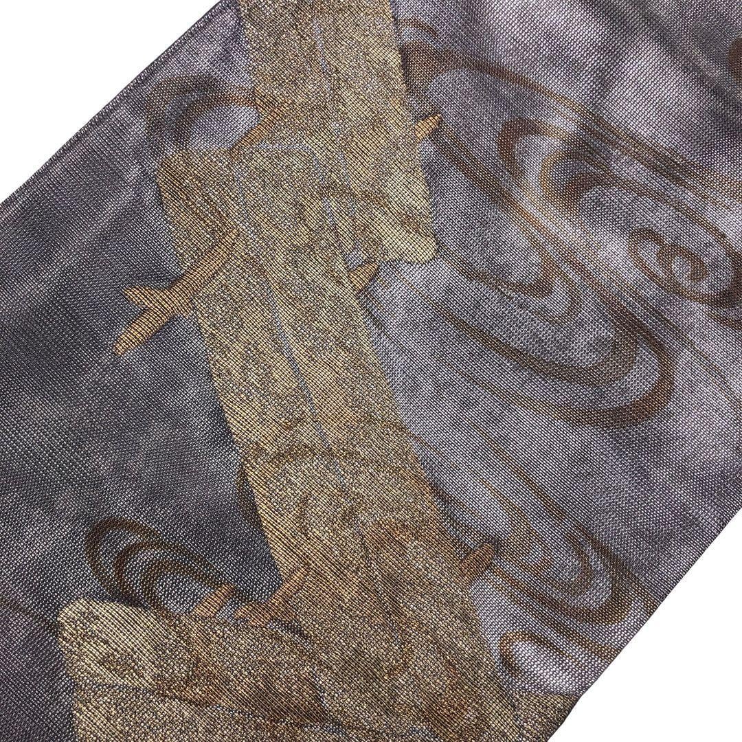 夏帯 袋帯 紗 流水模様 紫鼠色 金糸 O-5402 着物 きもの kimono 和服 和装 中古 リサイクル着物 【送料無料】