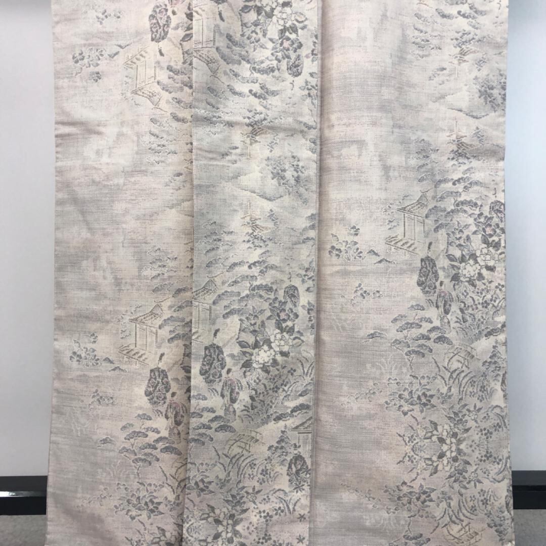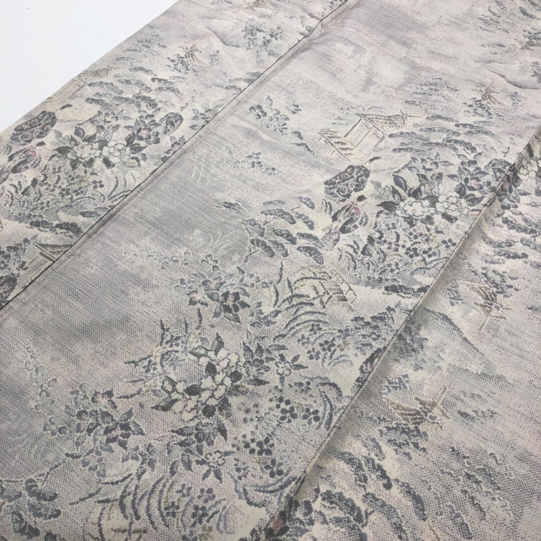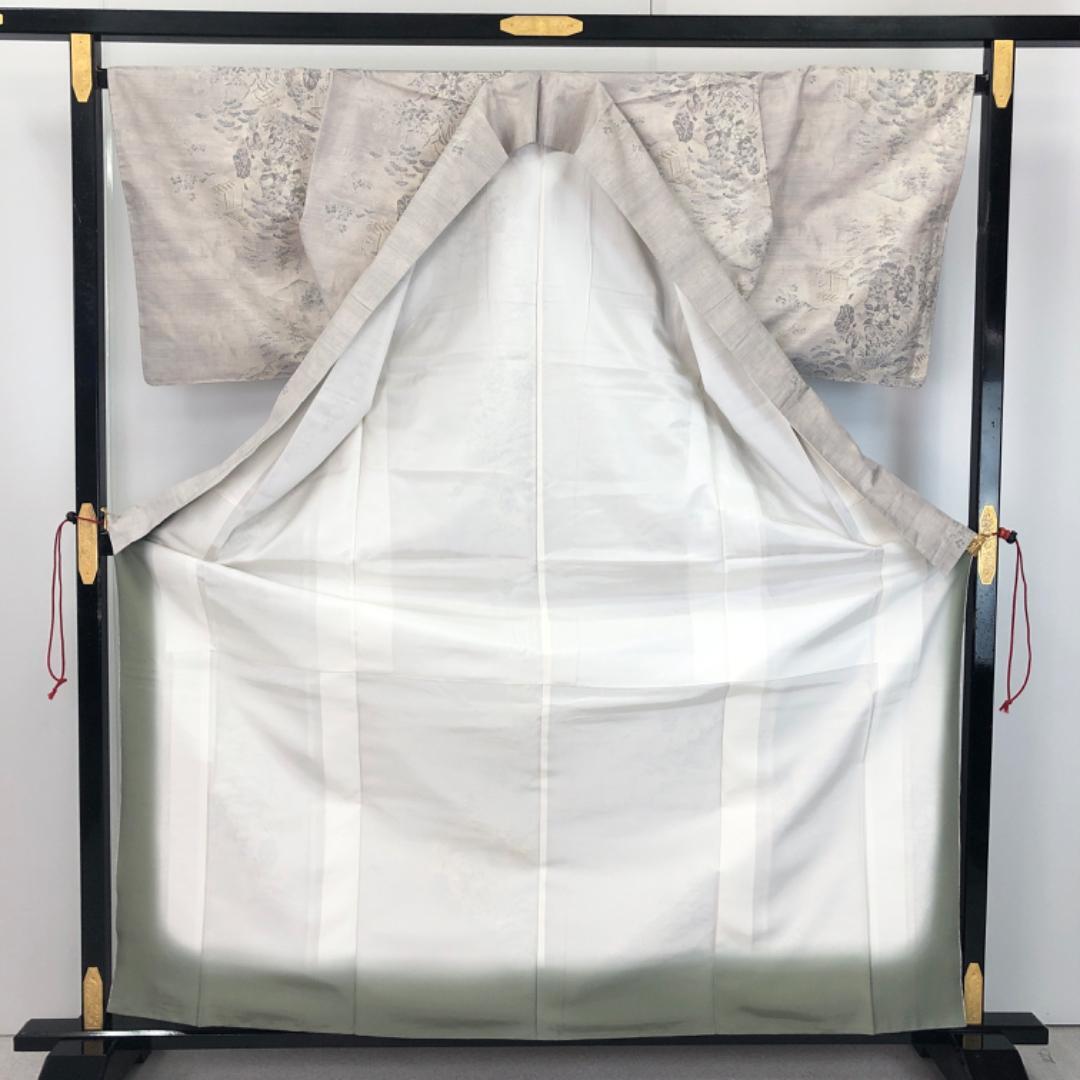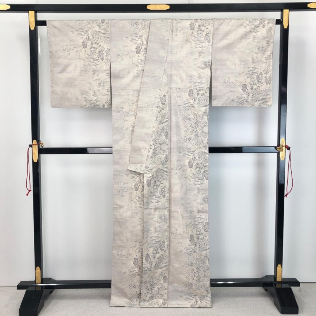 生成色の上品なお色味に風景がデザインされた素敵な柄裄のお品でございます。