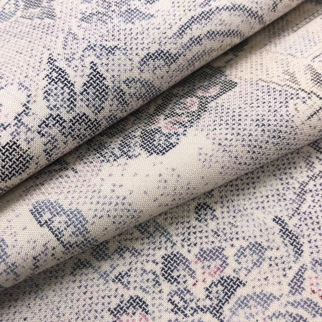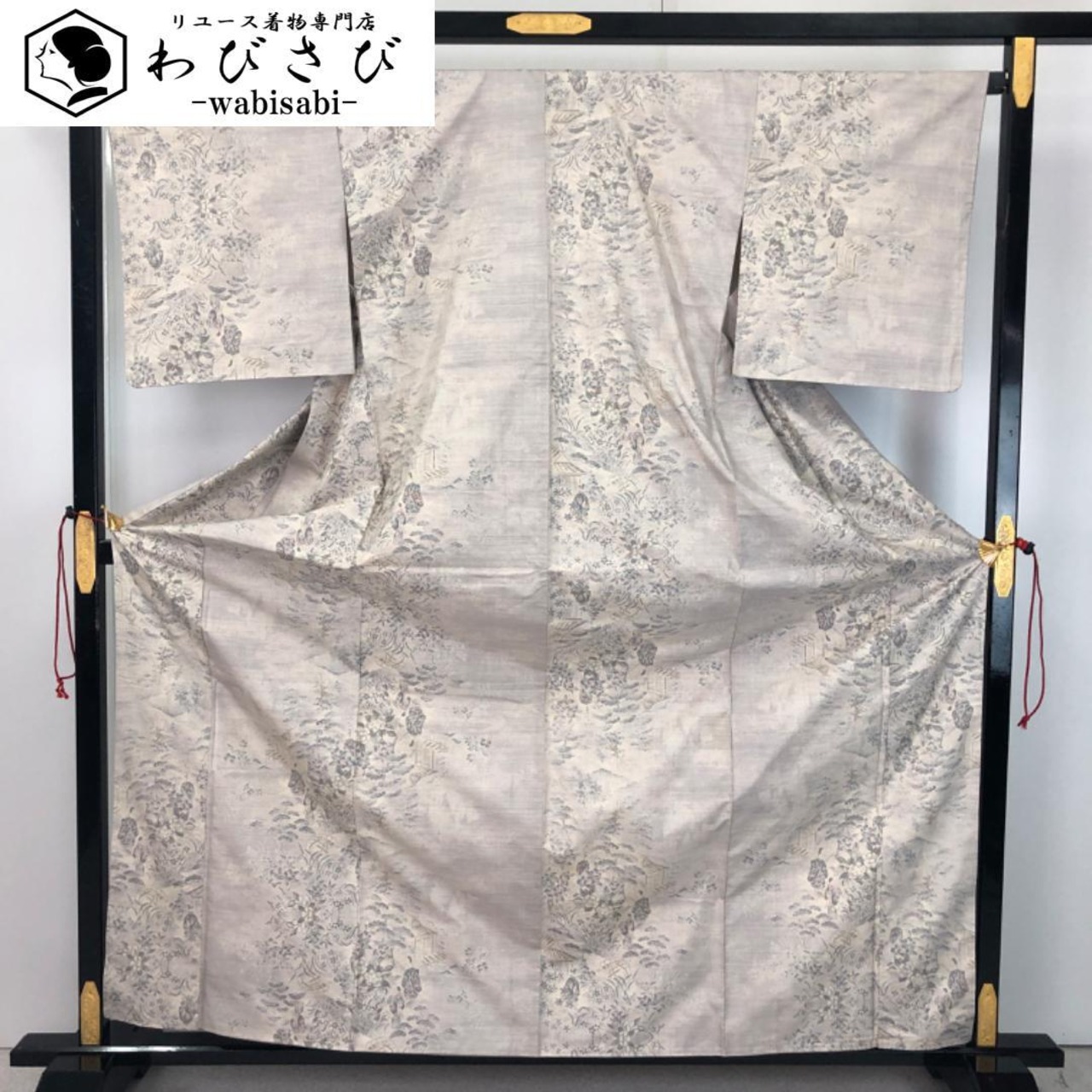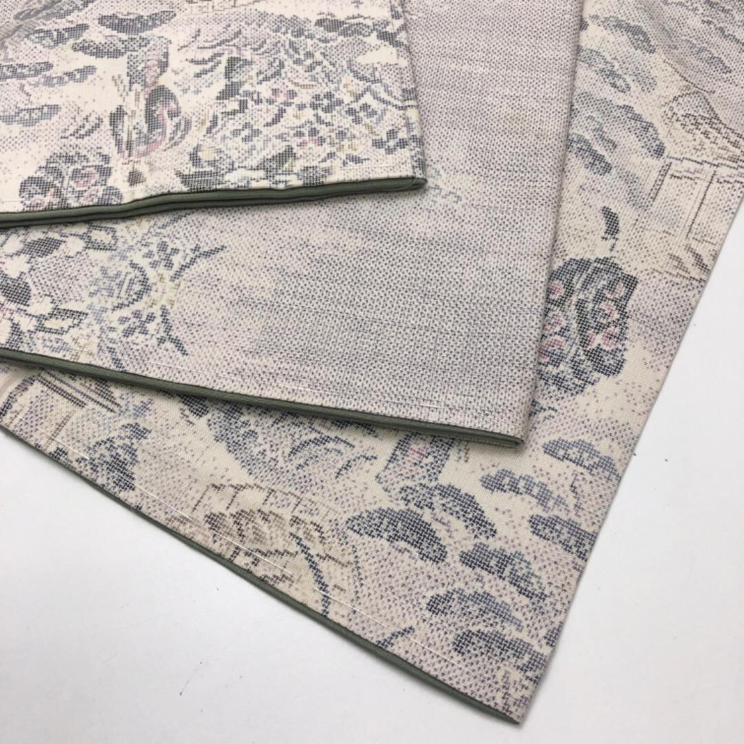 生成色の上品なお色味に風景がデザインされた素敵な柄裄のお品でございます。