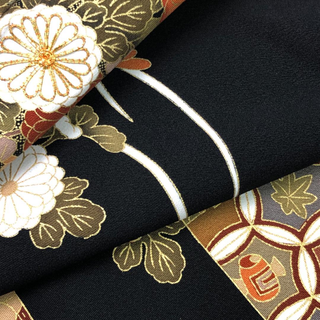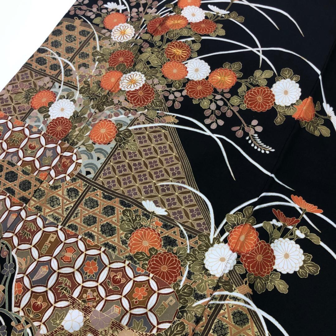 エ霞に花七宝、宝尽くしなど美しい柄裄がデザインされた素敵なお品でございます。