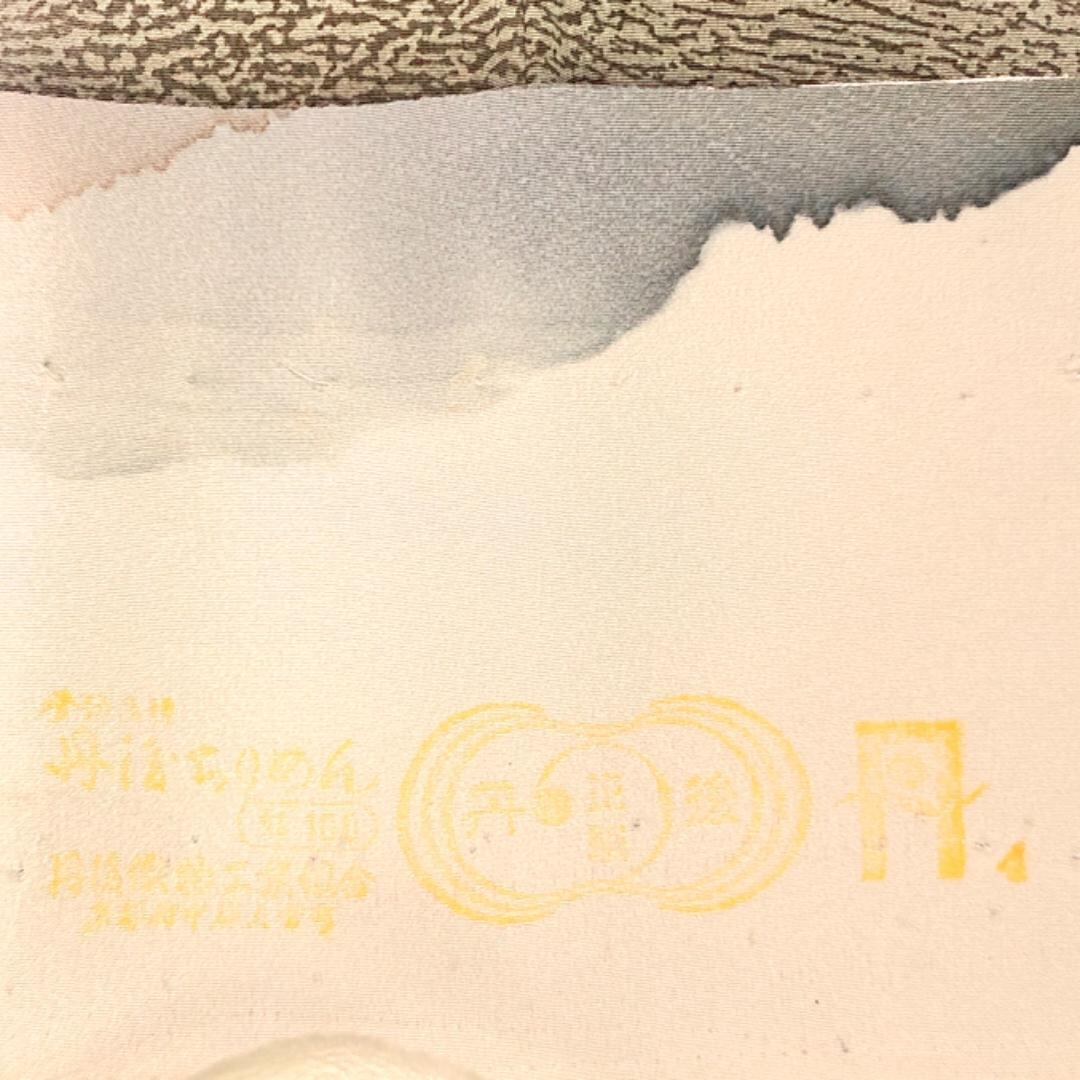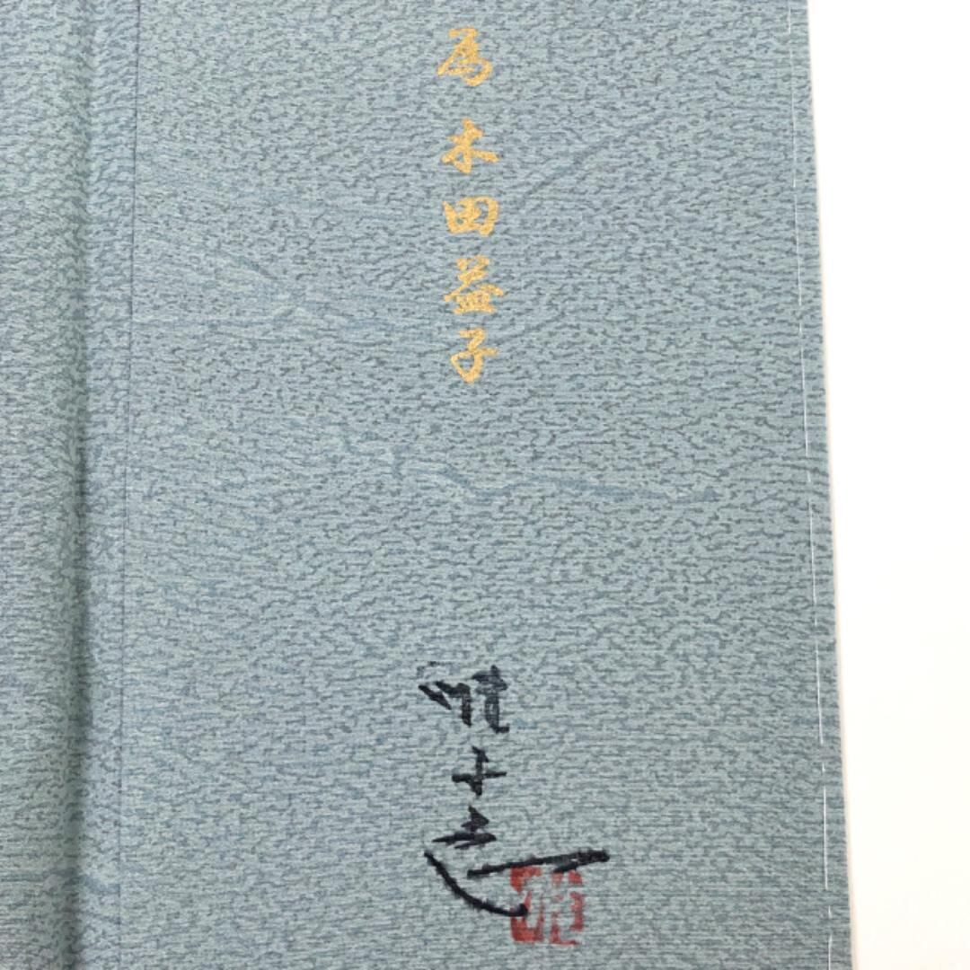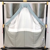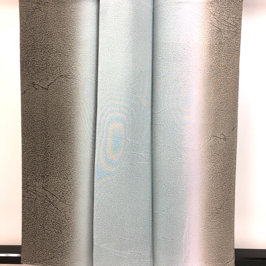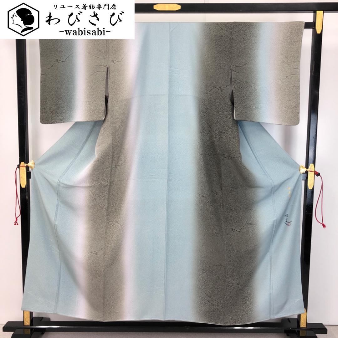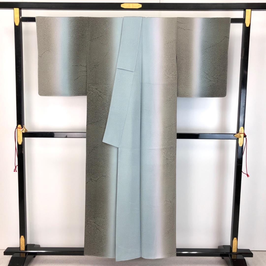 砧青磁色ベースの縦柄のグラデーションがデザインされた雰囲気の良い素敵な柄裄のお品でございます。