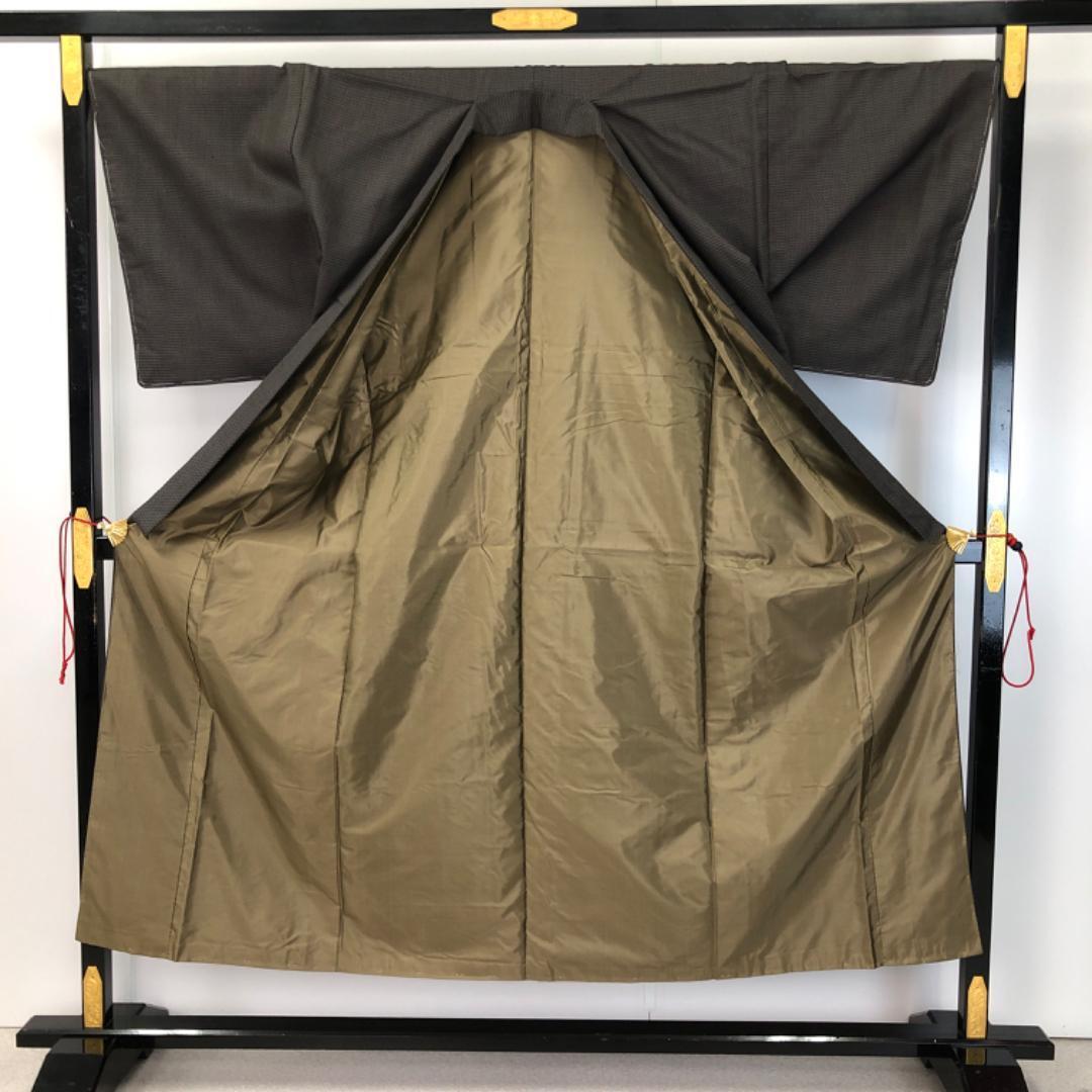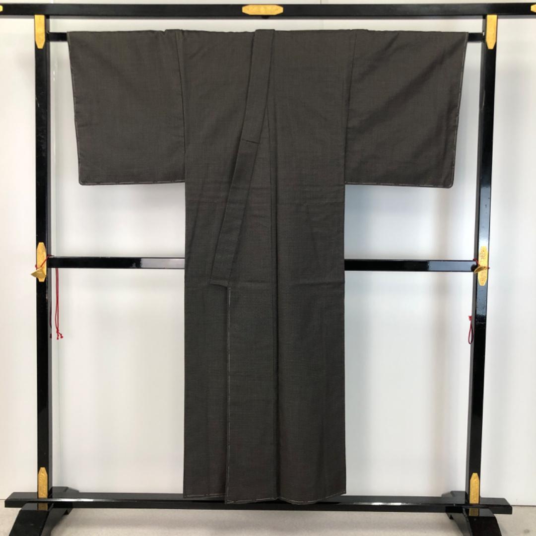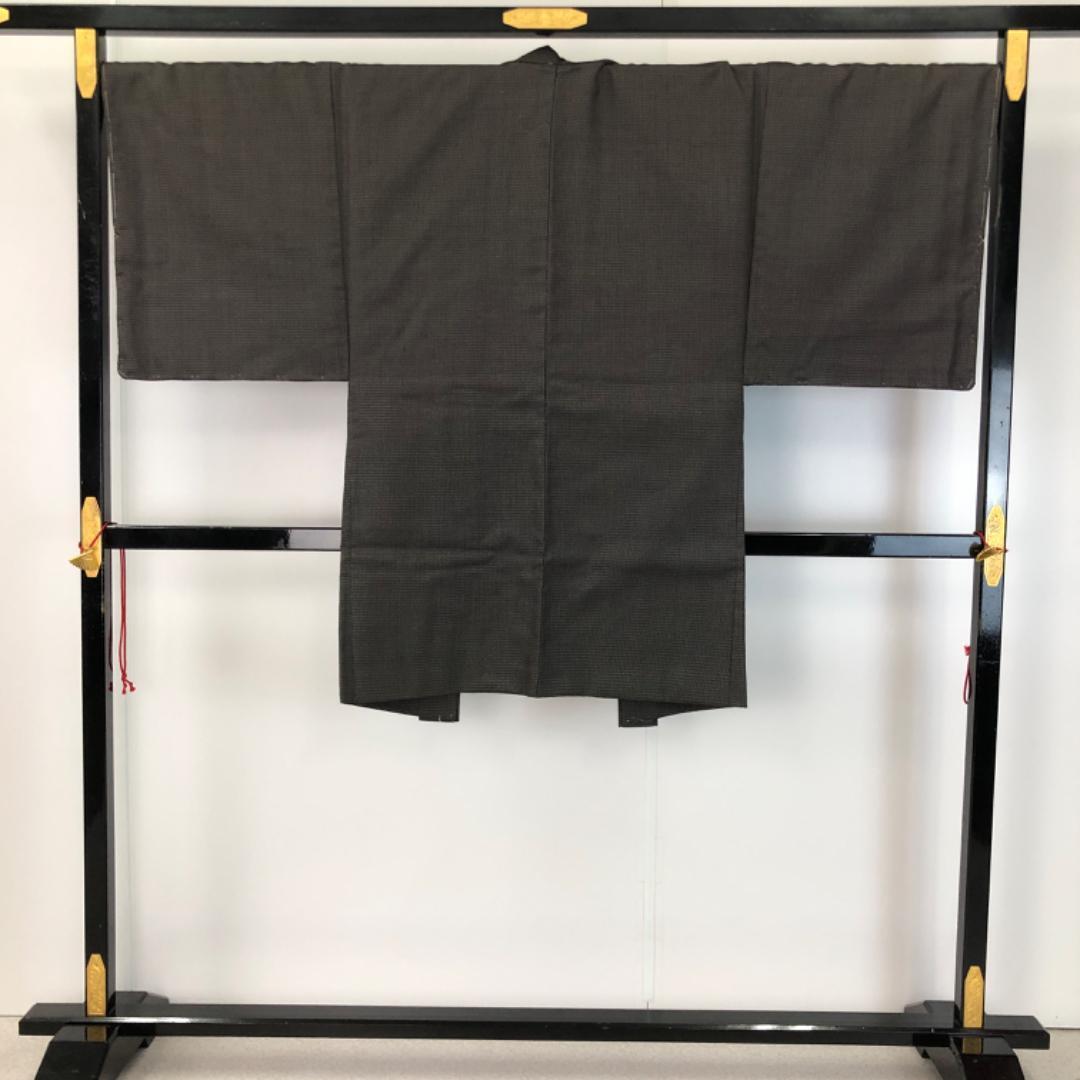 涅色の落ち着きあるお色味に変わり亀甲の柄裄がデザインされた素敵なお品でございます。