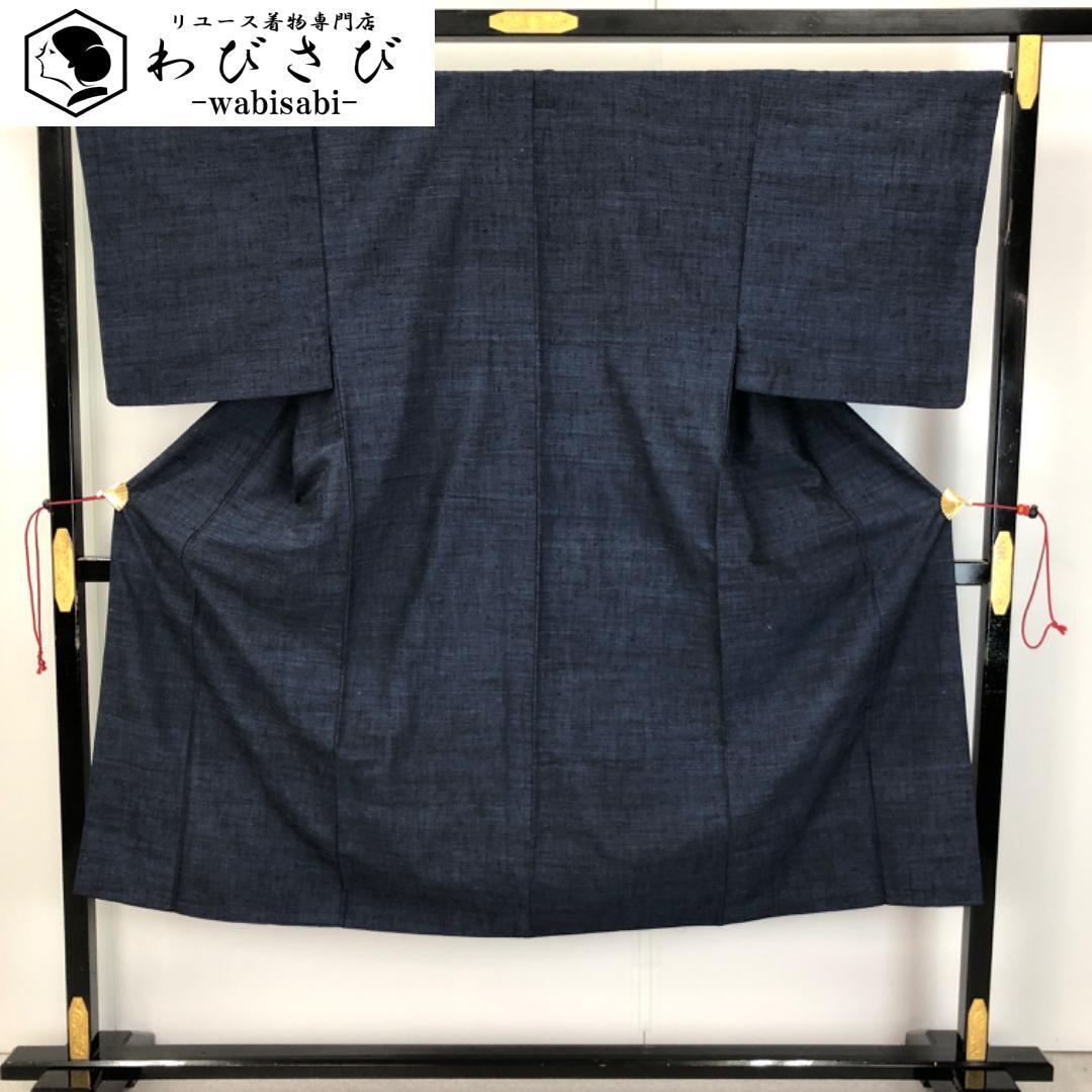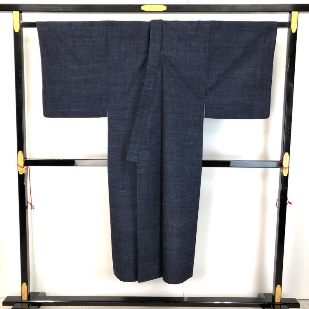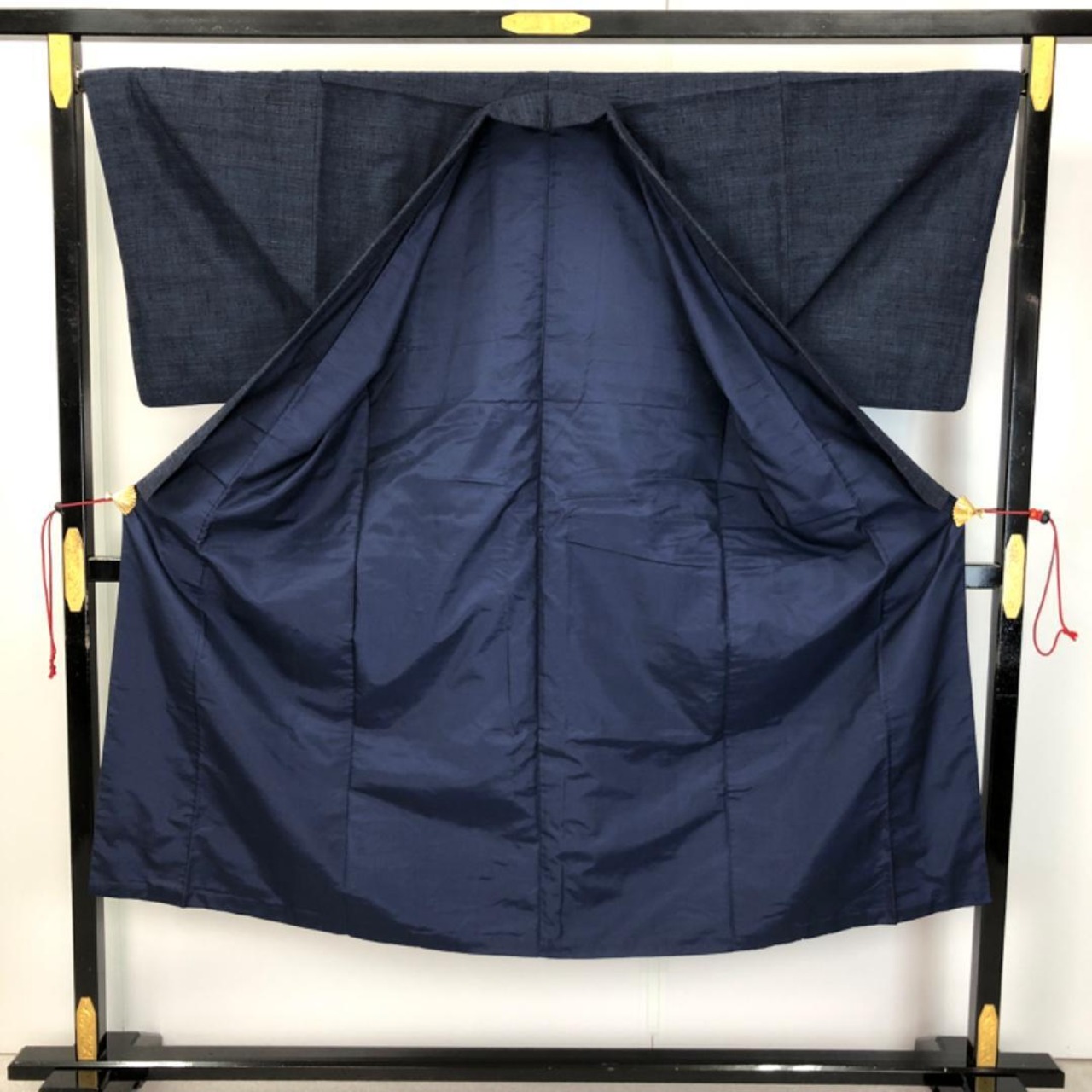 印度藍色の落ち着いた雰囲気の良いお色味、無地の紬の素敵なお品でございます。