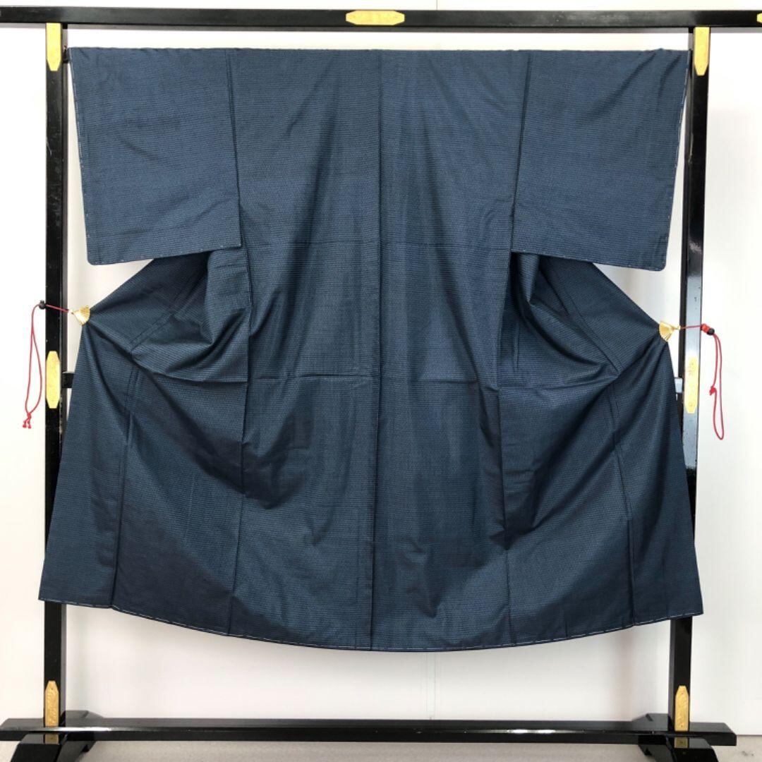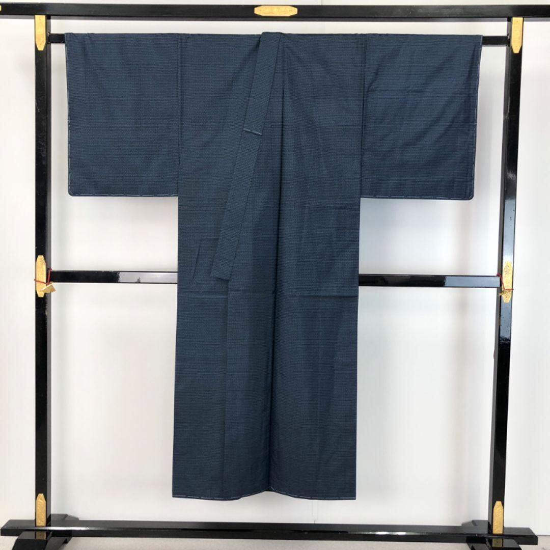 男着物 アンサンブル 本場大島紬 藍泥染 100亀甲 しつけ糸 M-1109 着物 きもの kimono 和服 和装 中古 リサイクル着物 【送料無料】
