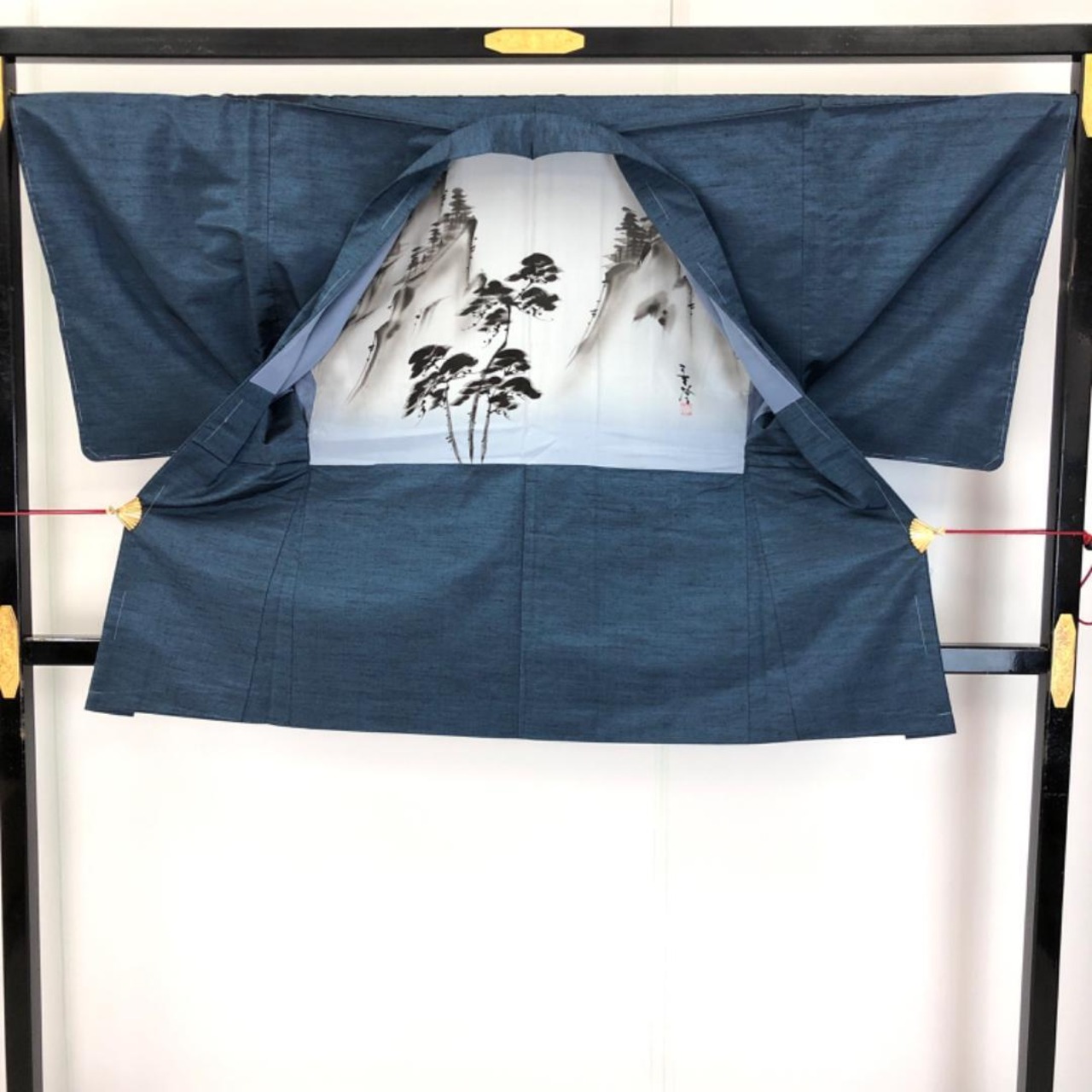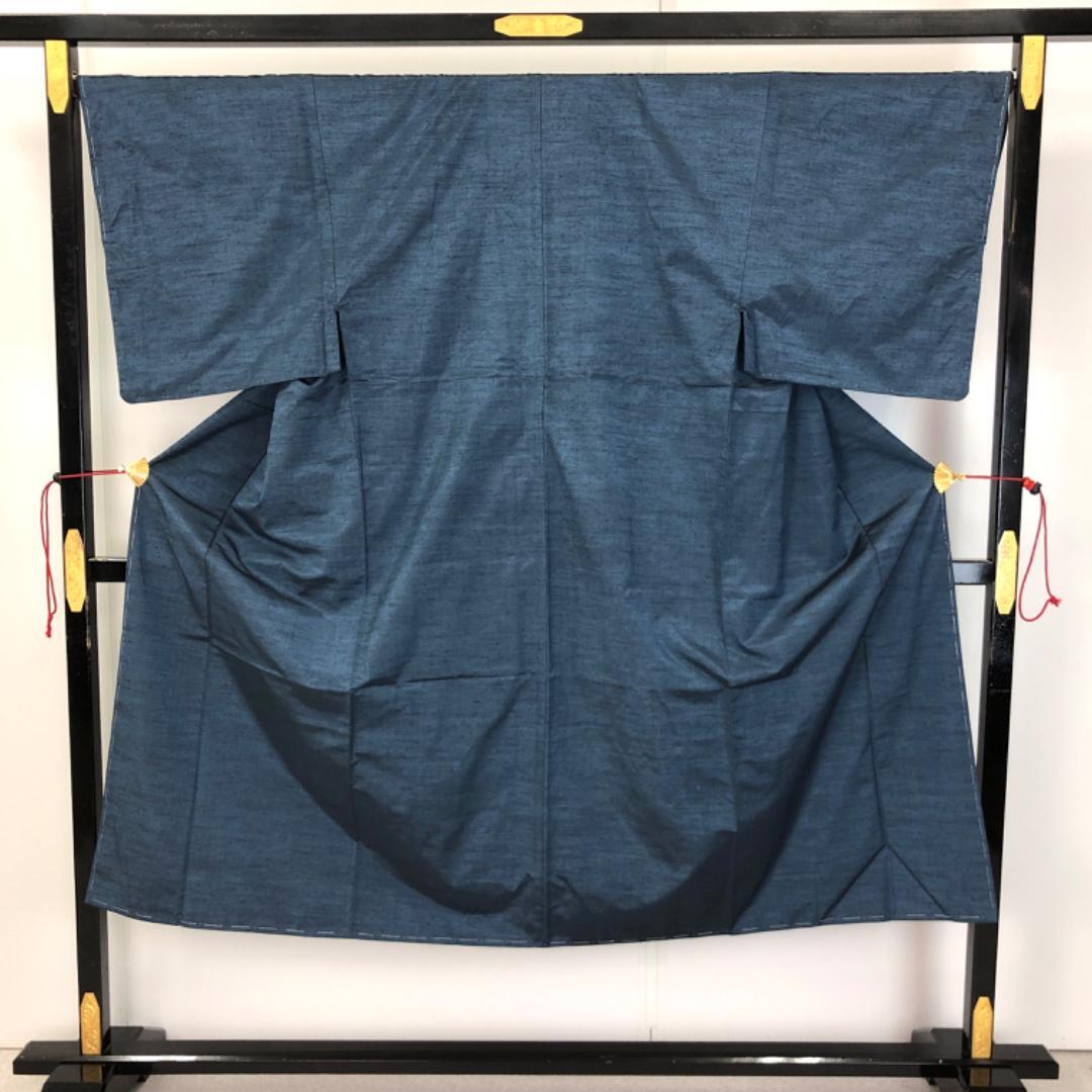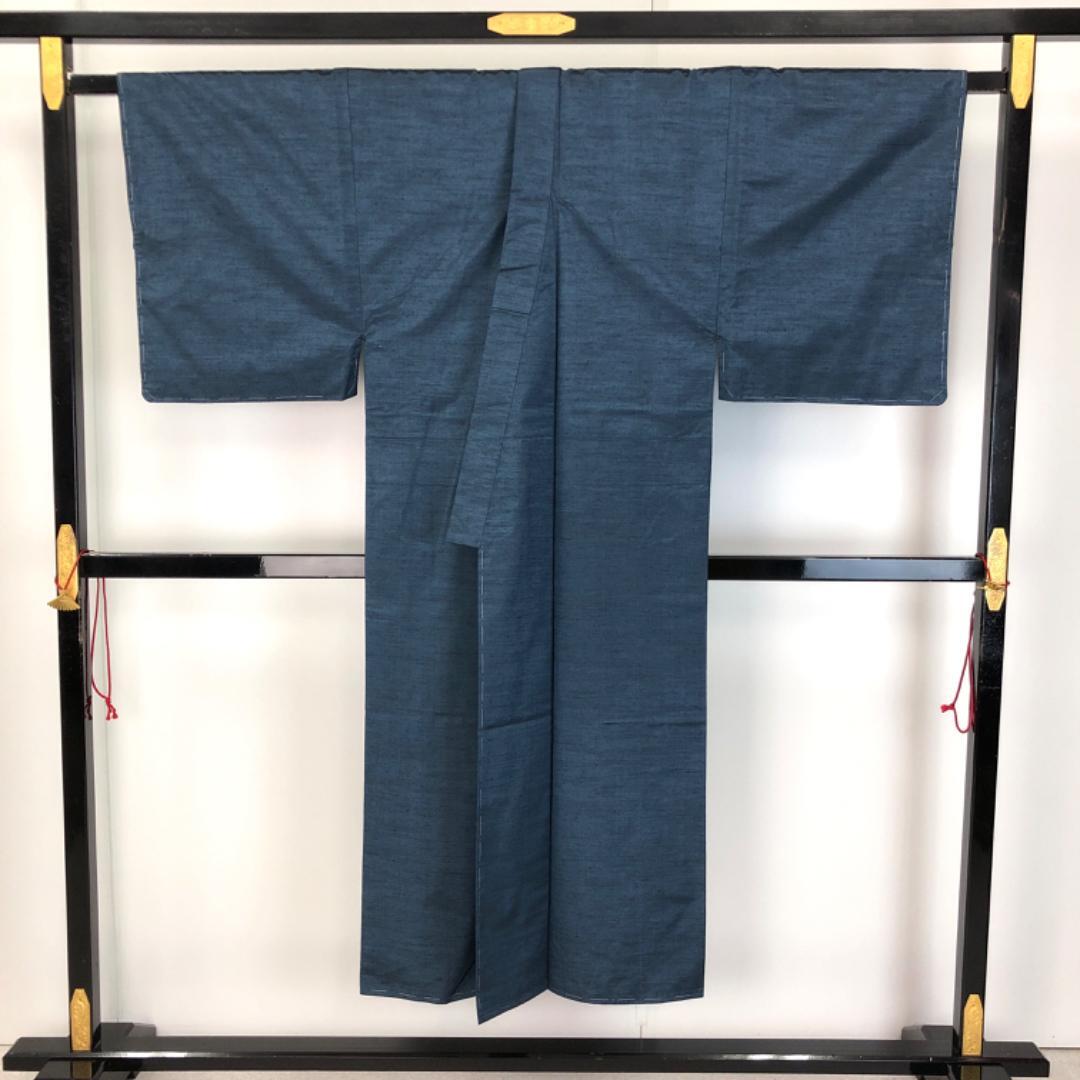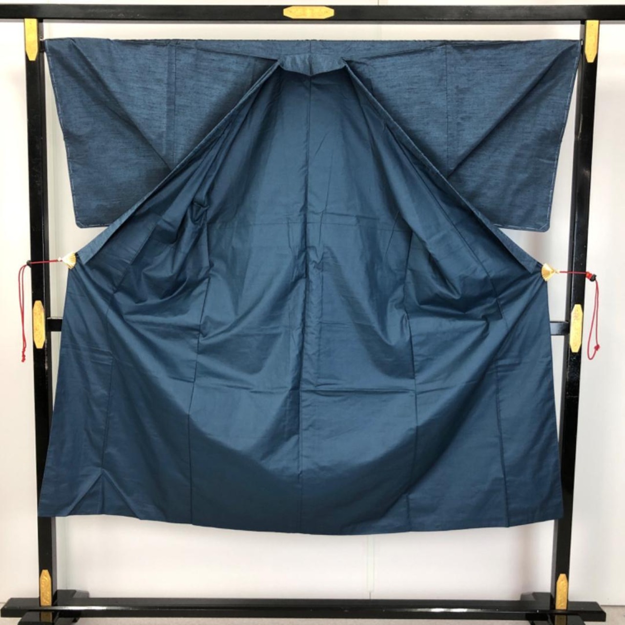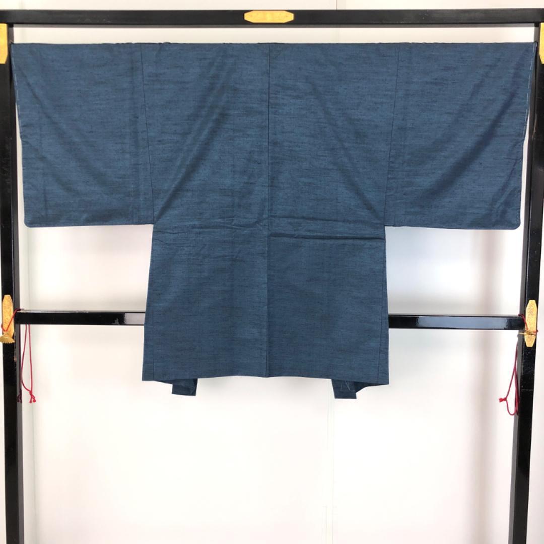 男着物 アンサンブル 紬 無地 藍摺色 M-1113 着物 きもの kimono 和服 和装 中古 リサイクル着物 【送料無料】