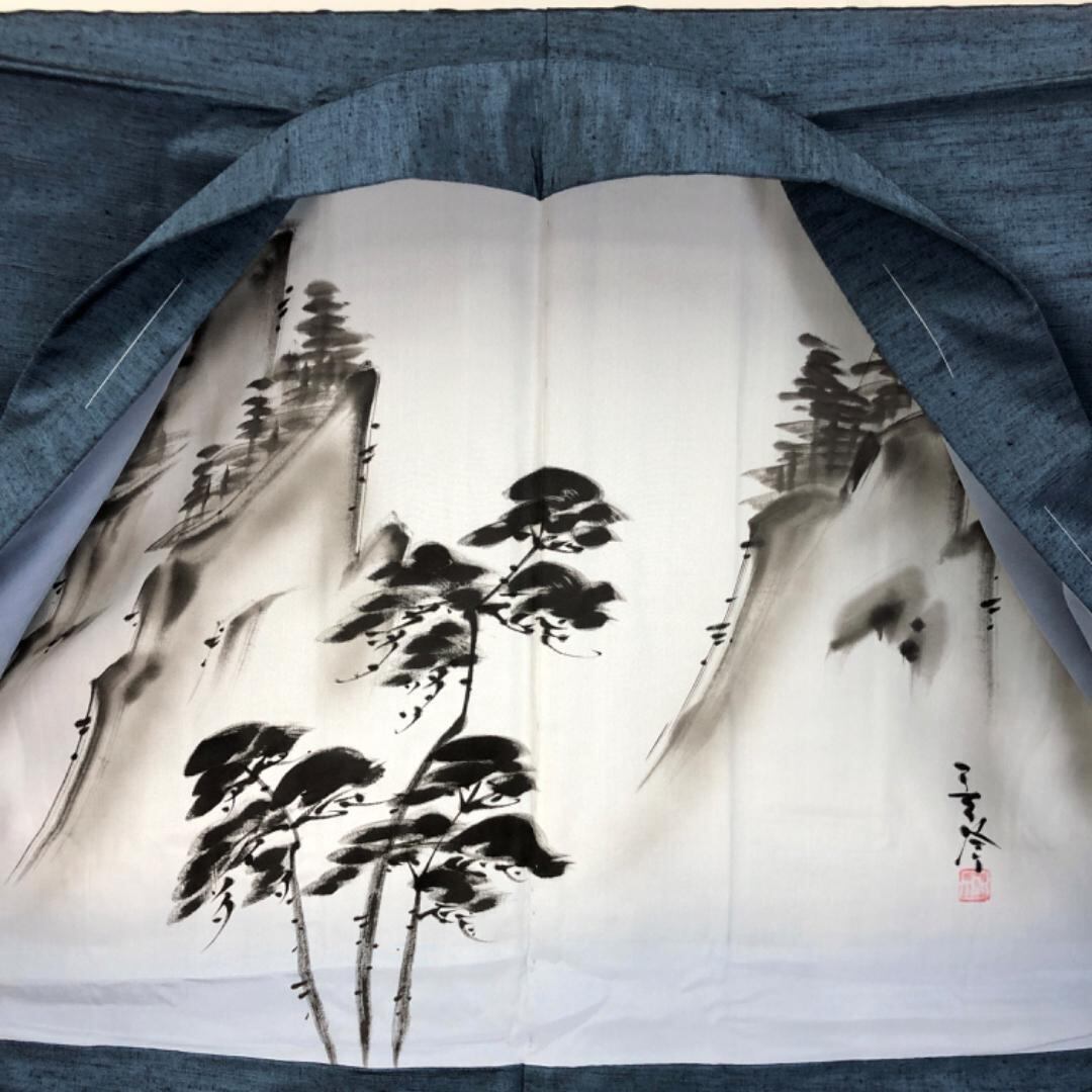藍摺色の落ち着いた雰囲気の良いお色味、無地の紬の素敵なお品でございます。