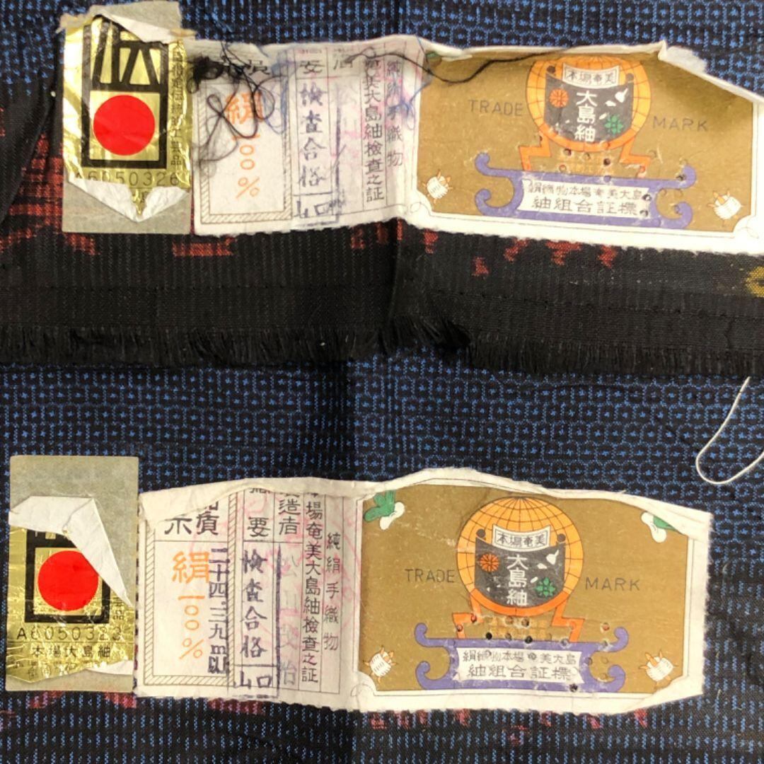 男着物 アンサンブル 本場大島紬 証紙付 100亀甲 キングサイズ M-1112 着物 きもの kimono 和服 和装 中古 リサイクル着物 【送料無料】