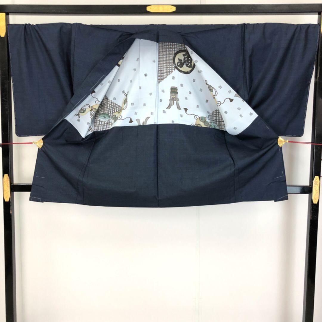 濃紺色のお色味に100亀甲がデザインされた素敵なお品でございます。