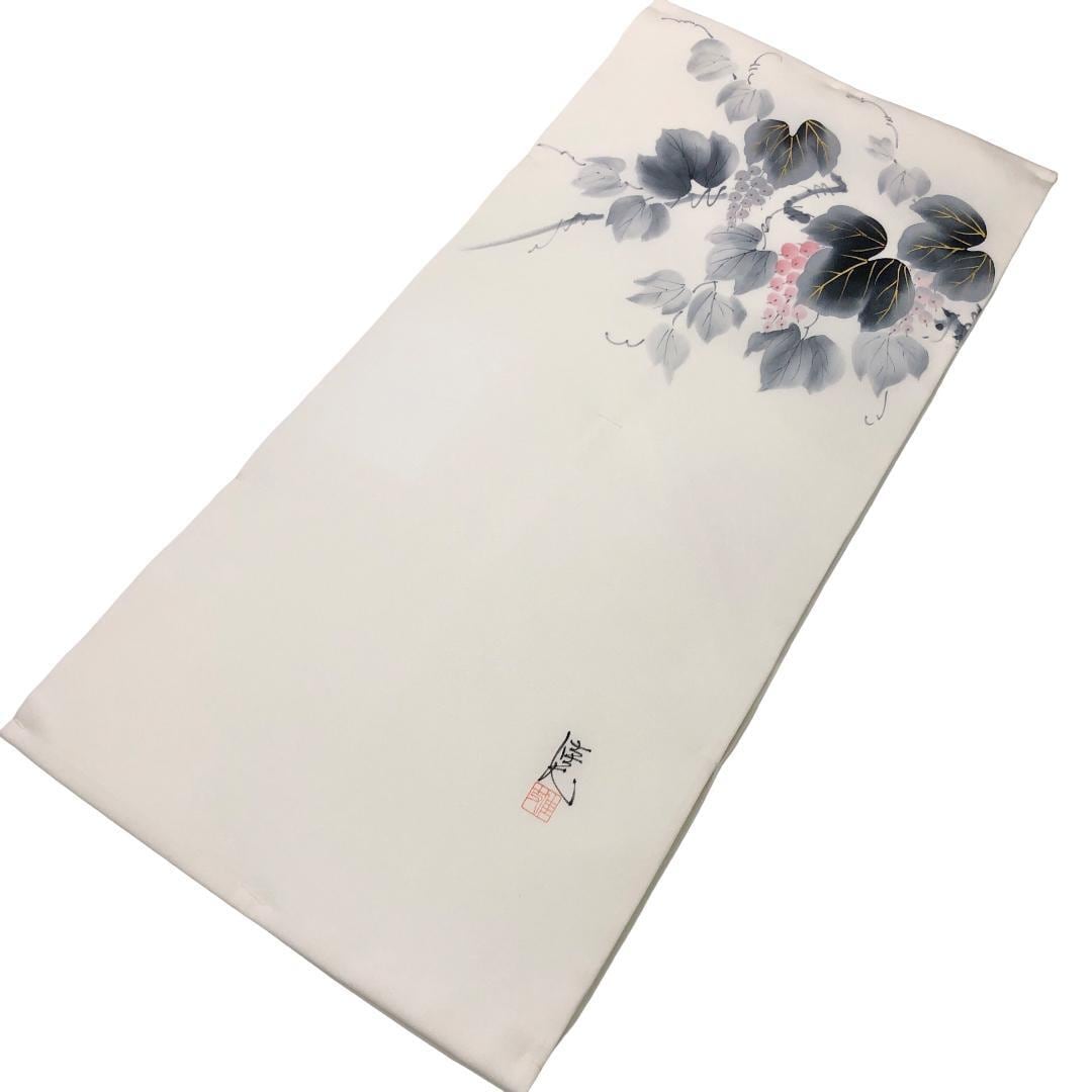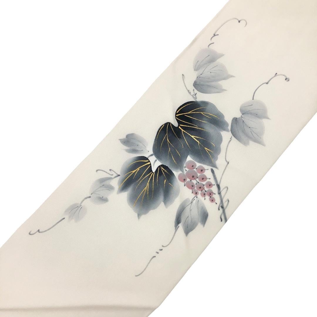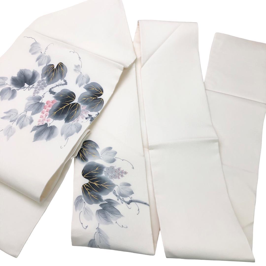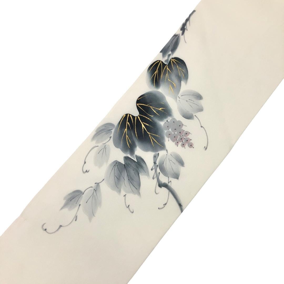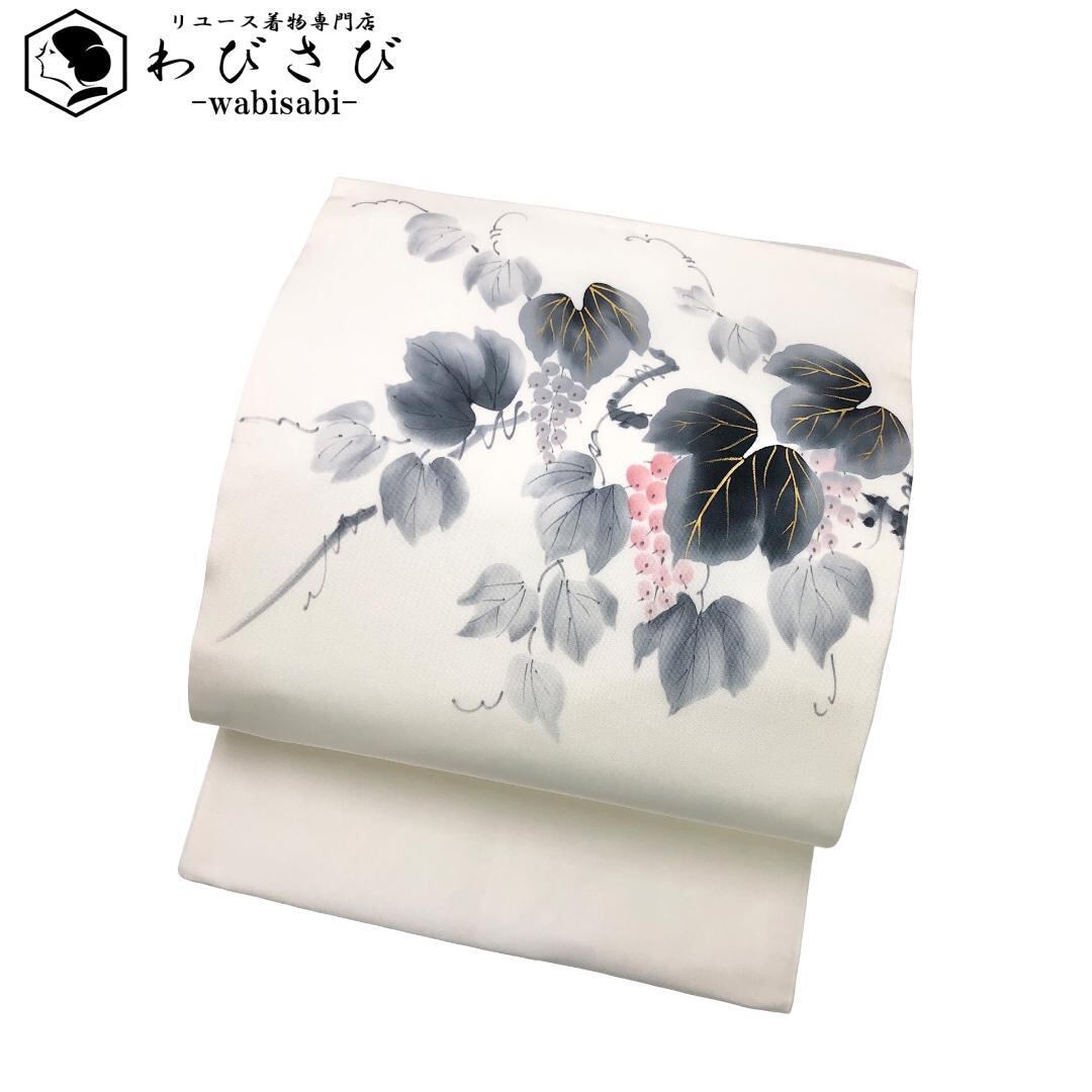 名古屋帯 作家物 塩瀬 葡萄 手描き 乳白色 O-5415 着物 きもの kimono 和服 和装 中古 リサイクル着物 【送料無料】