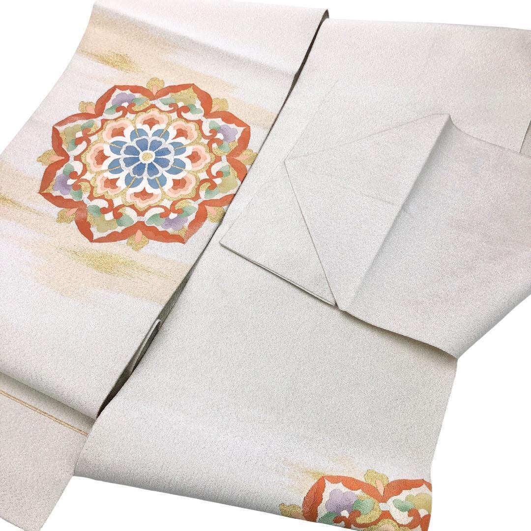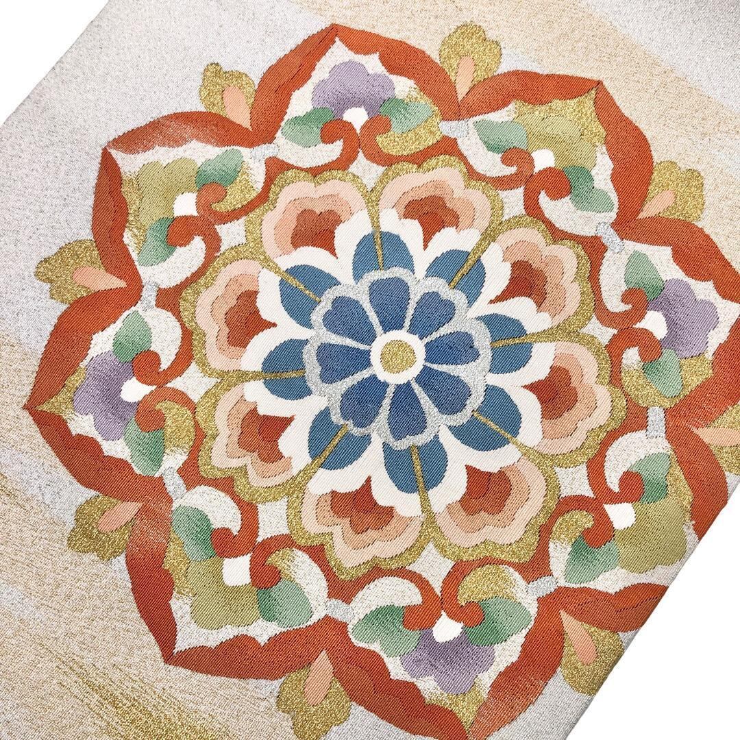 砂色の上品なお色味に美しい華柄模様がデザインされた素敵なお品でございます。