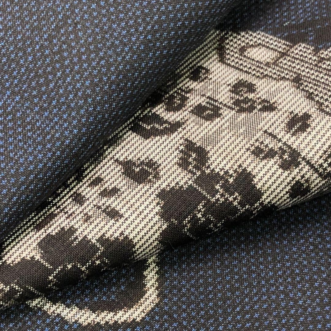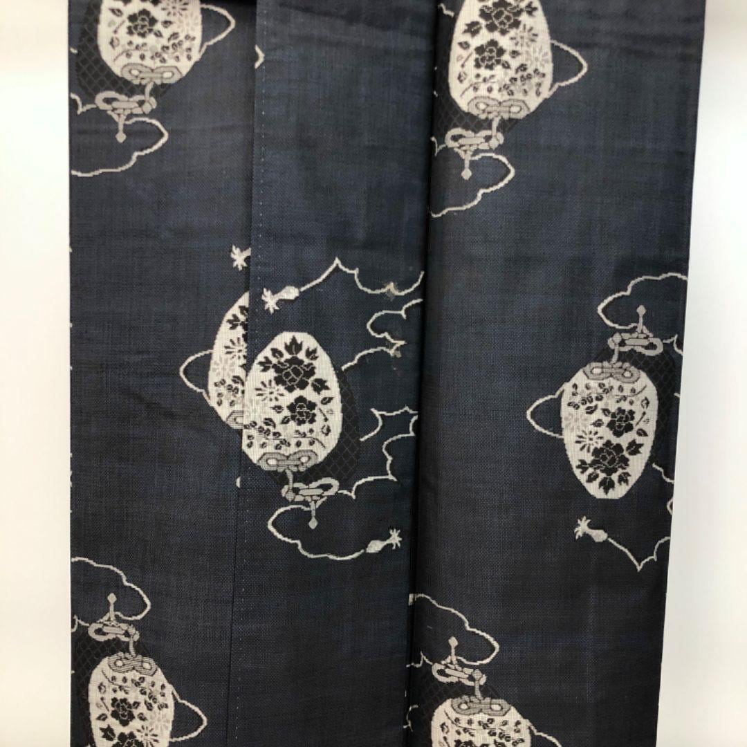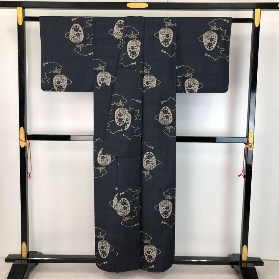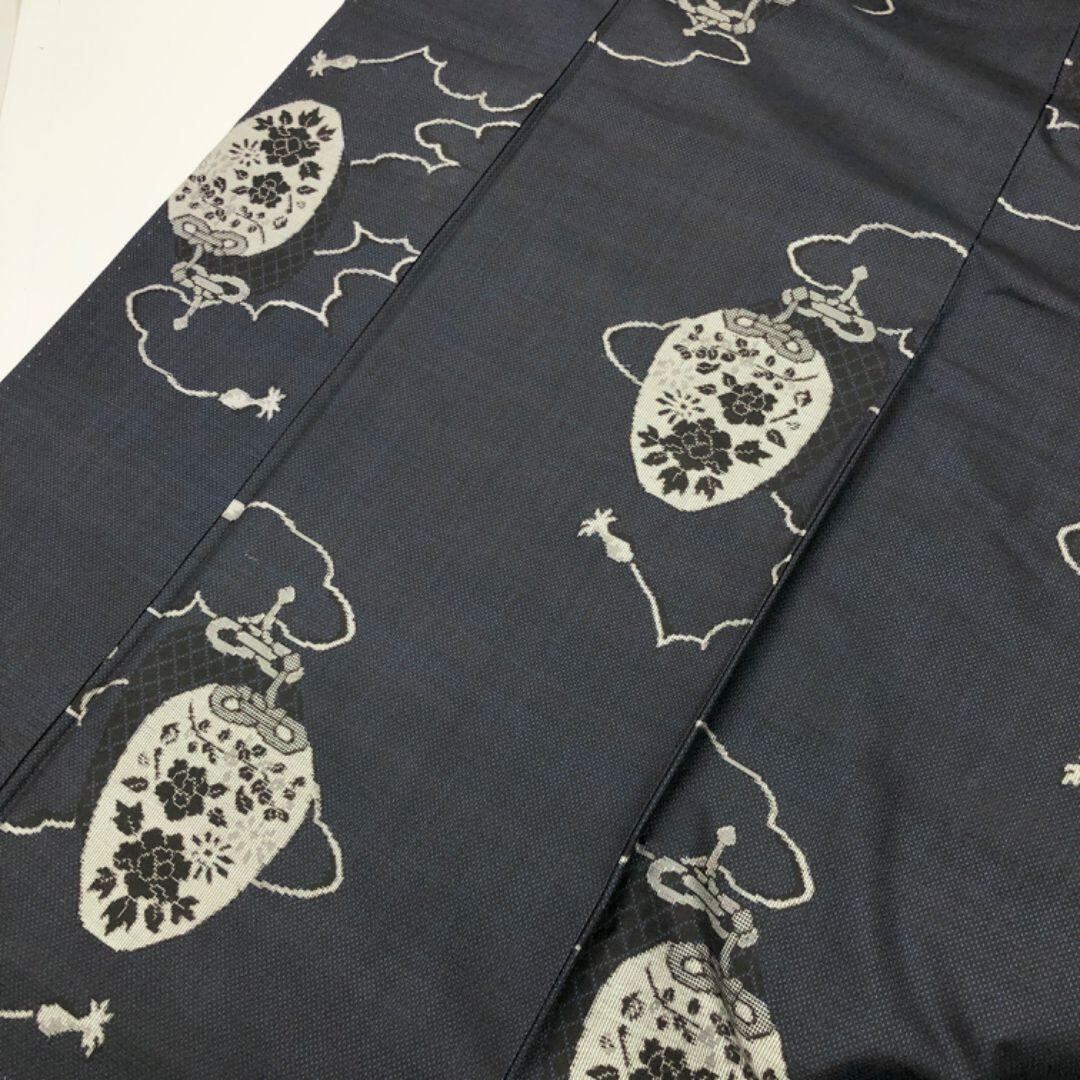 本場大島紬 藍泥染 一元 7マルキ 仕覆に花模様 紺鉄色 K-5211 着物 きもの kimono 和服 和装 中古 リサイクル着物 【送料無料】