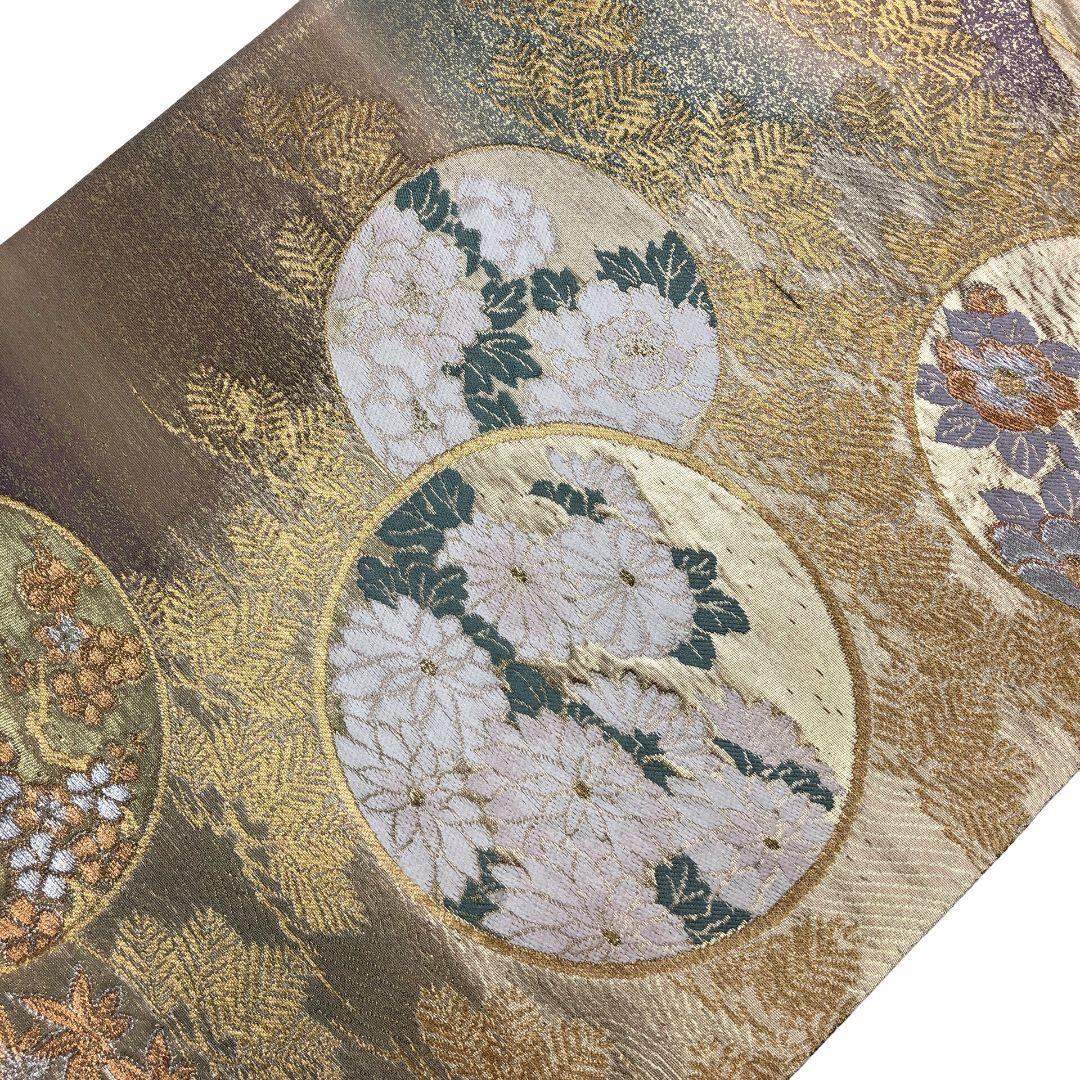 袋帯 彩美二重箔 丸に花模様 金銀糸 金色 O-5424 着物 きもの kimono 和服 和装 中古 リサイクル着物 【送料無料】