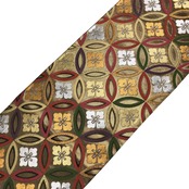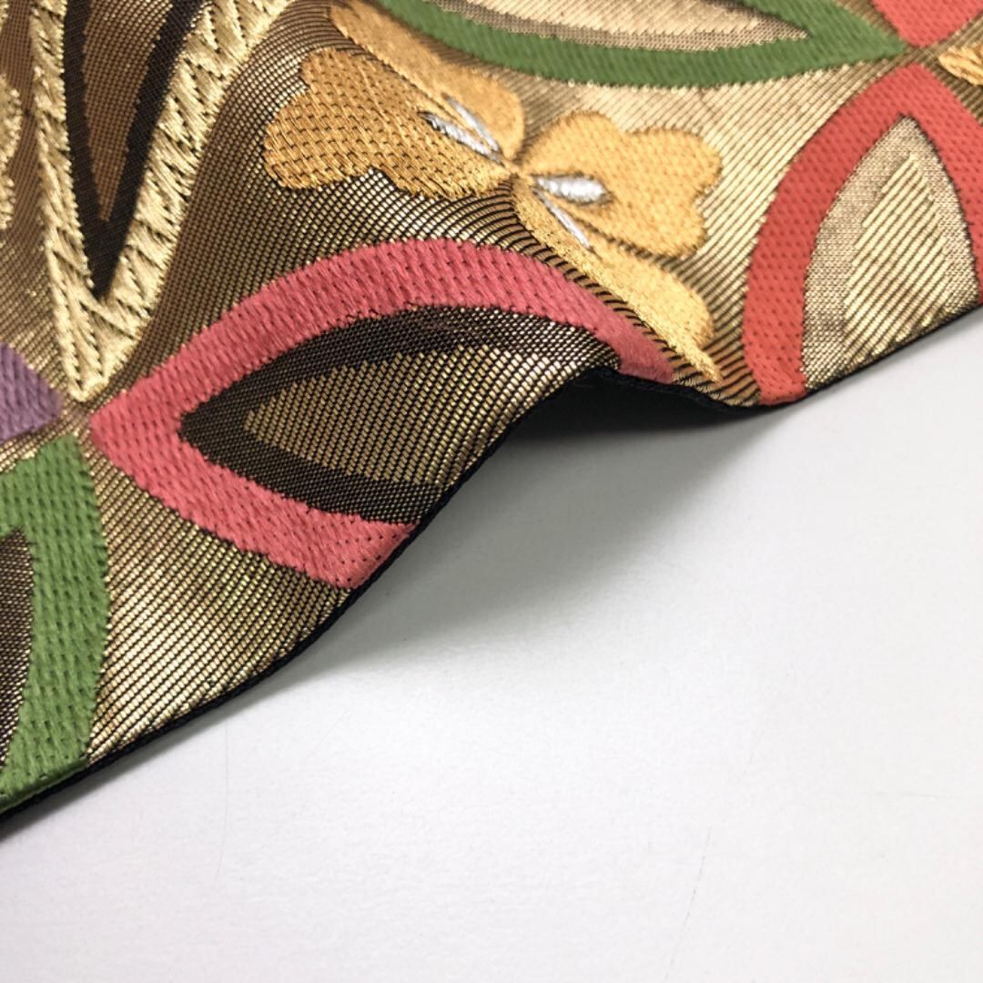 金色ベースのお色味に色鮮やかな唐織の花七宝繋ぎの柄行がデザインされた素敵なお品でございます。