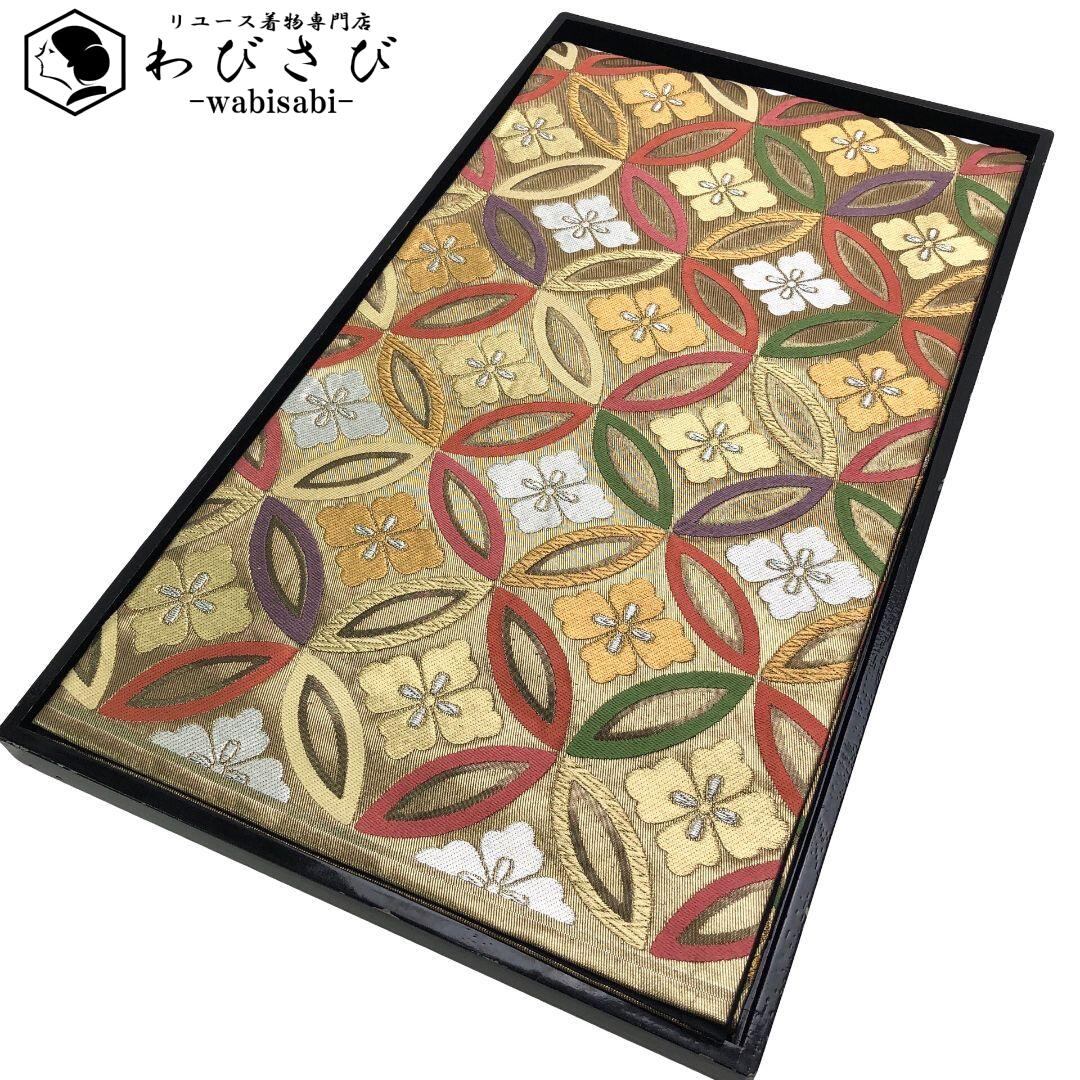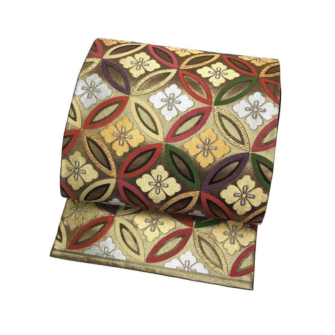 袋帯 花七宝繋ぎ 唐織 金色 金銀糸 O-5427 着物 きもの kimono 和服 和装 中古 リサイクル着物 【送料無料】