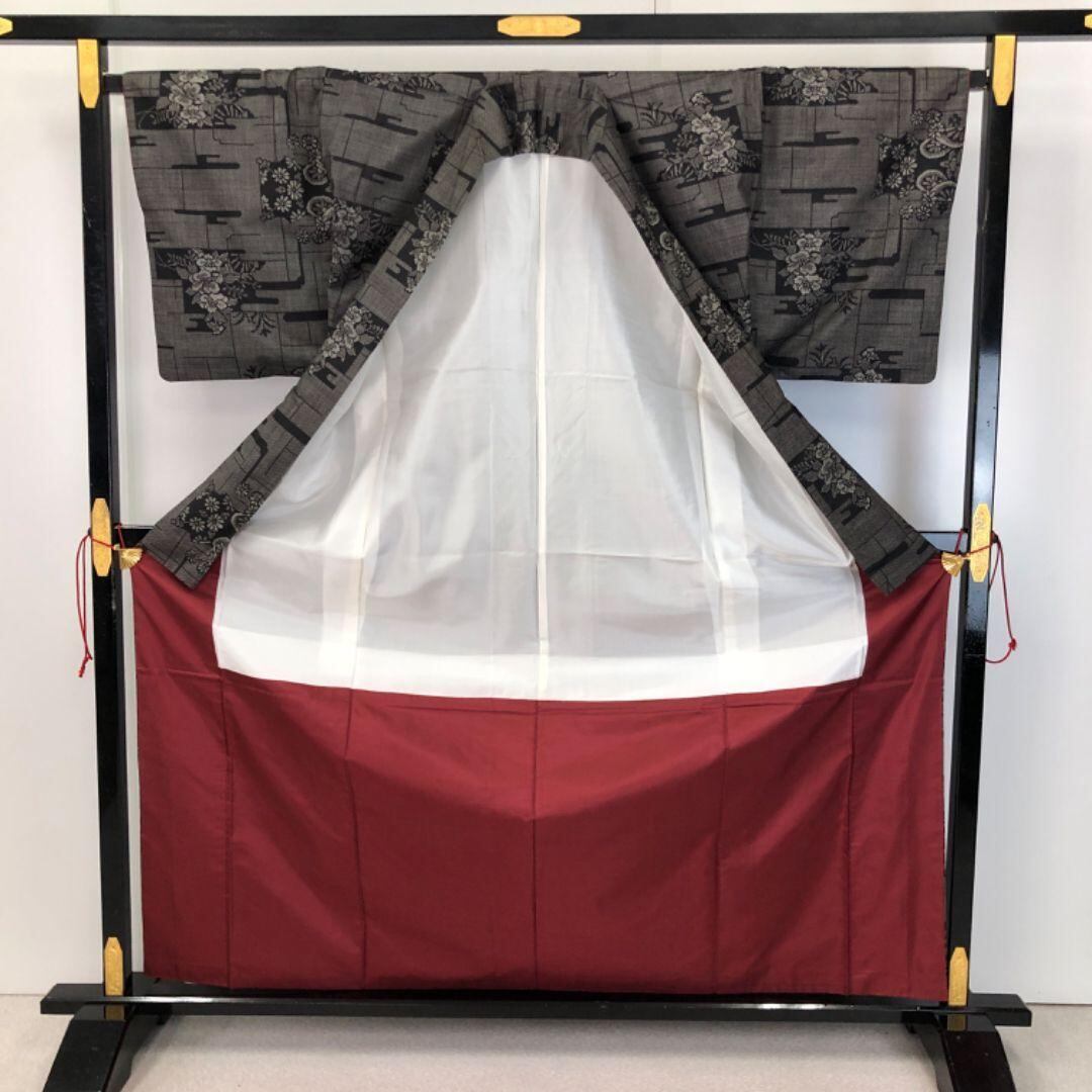 モノトーンベースのお色味にエ霞、花模様の柄裄がデザインされた素敵なお品でございます。