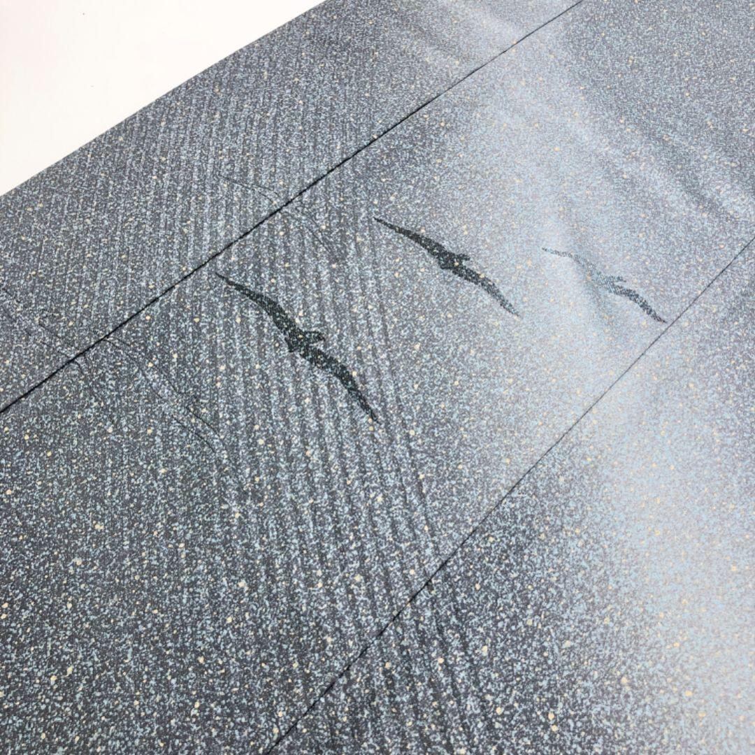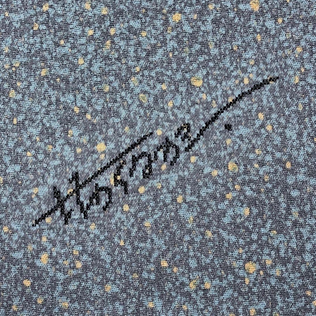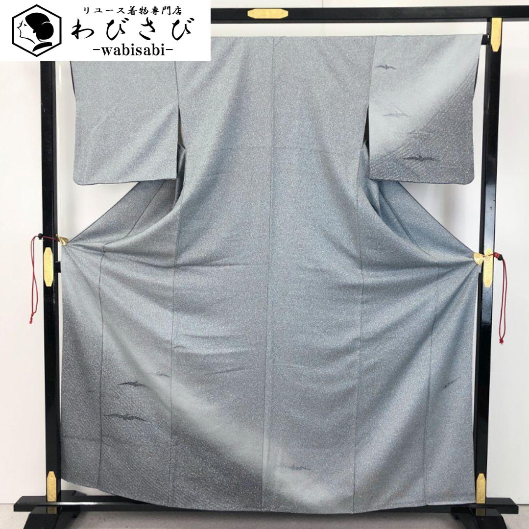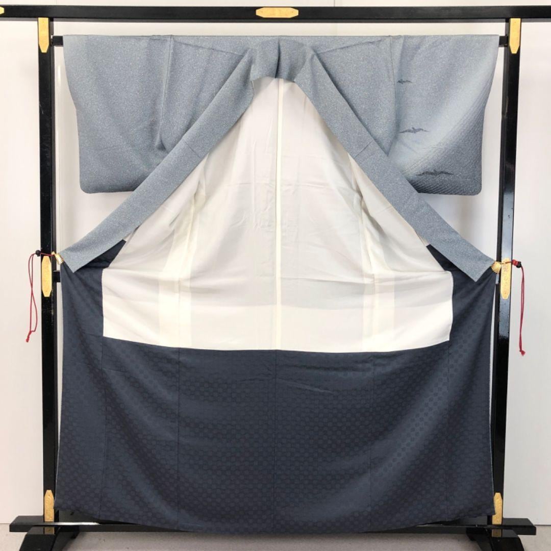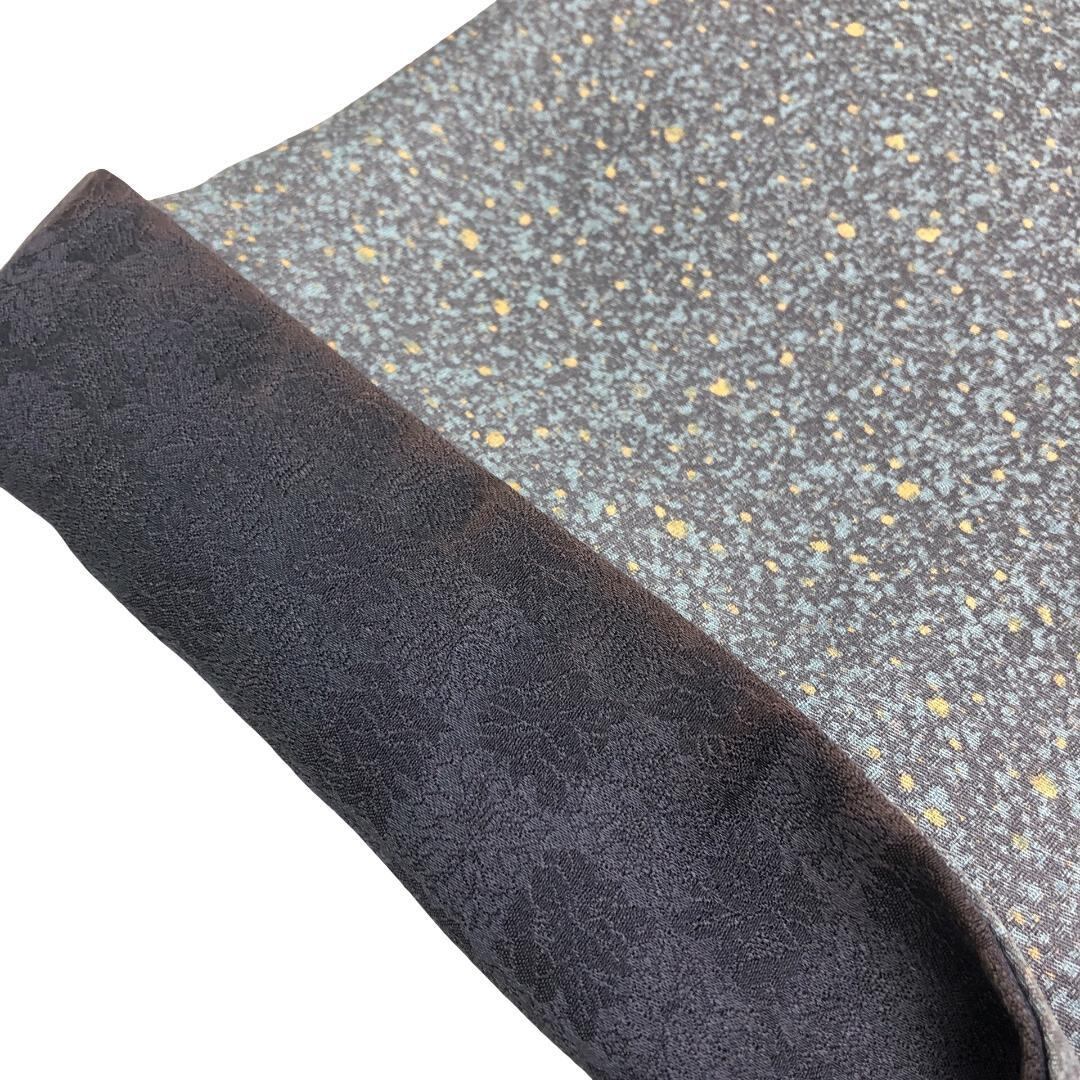 空色鼠ベースのお色味に鳥柄、暈し、叩き染でデザインされた素敵な柄行のお品でございます。