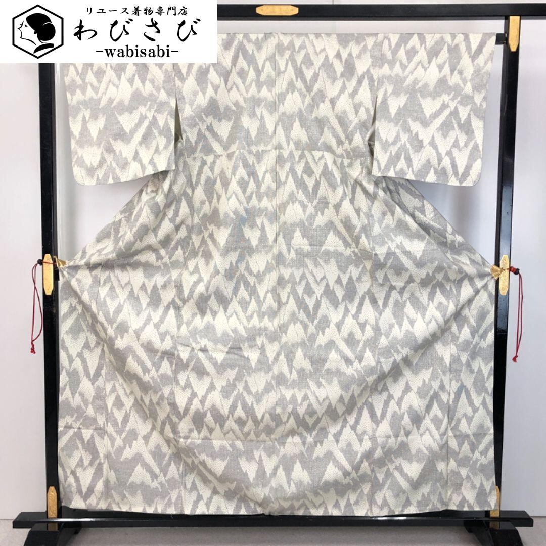 紬着物 抽象模様 乳白色 しつけ糸 K-5216 着物 きもの kimono 和服 和装 中古 リサイクル着物 【送料無料】