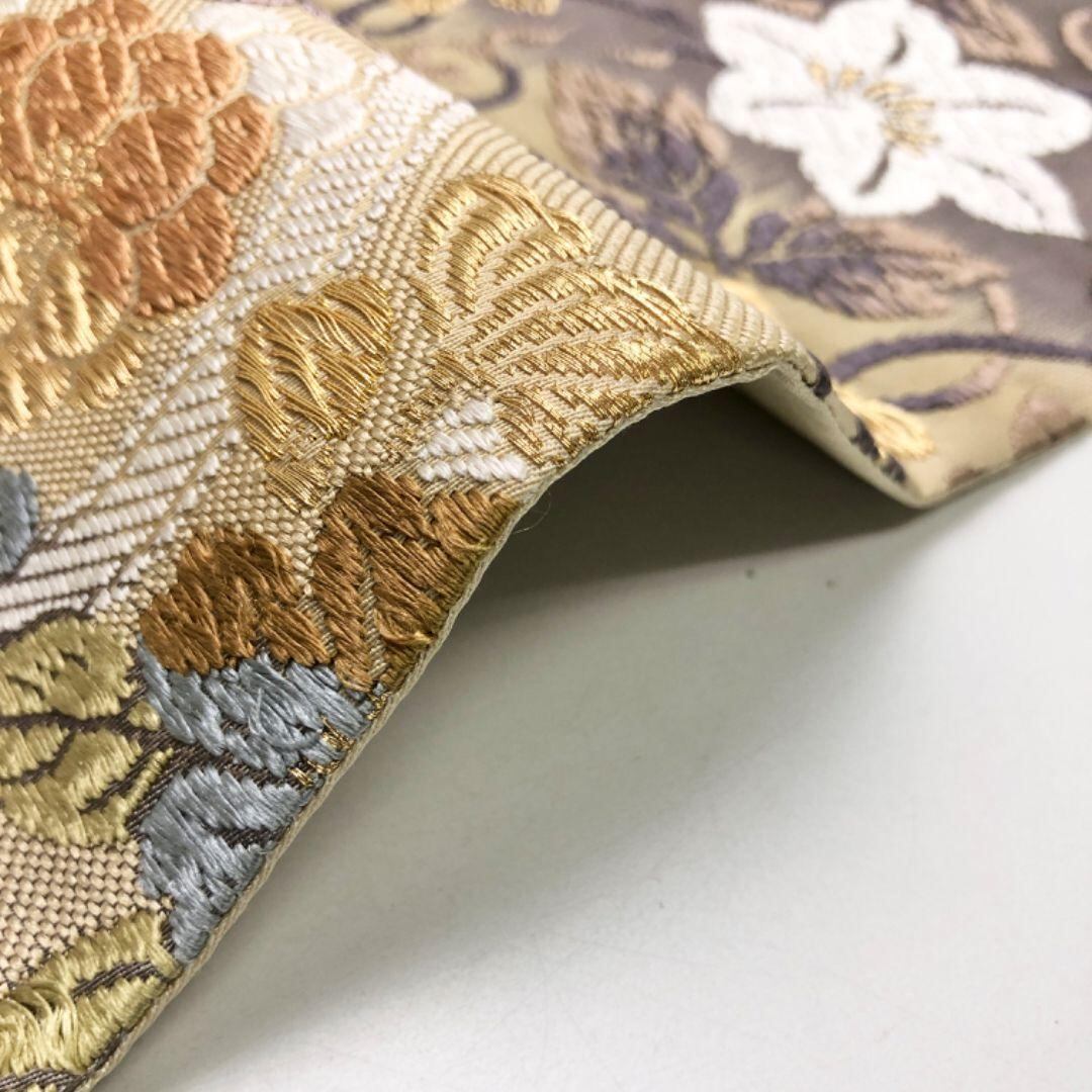 袋帯 唐織 花唐草模様 牙黄色 金糸 ガード加工 O-5418 着物 きもの kimono 和服 和装 中古 リサイクル着物 【送料無料】
