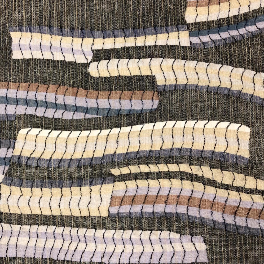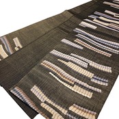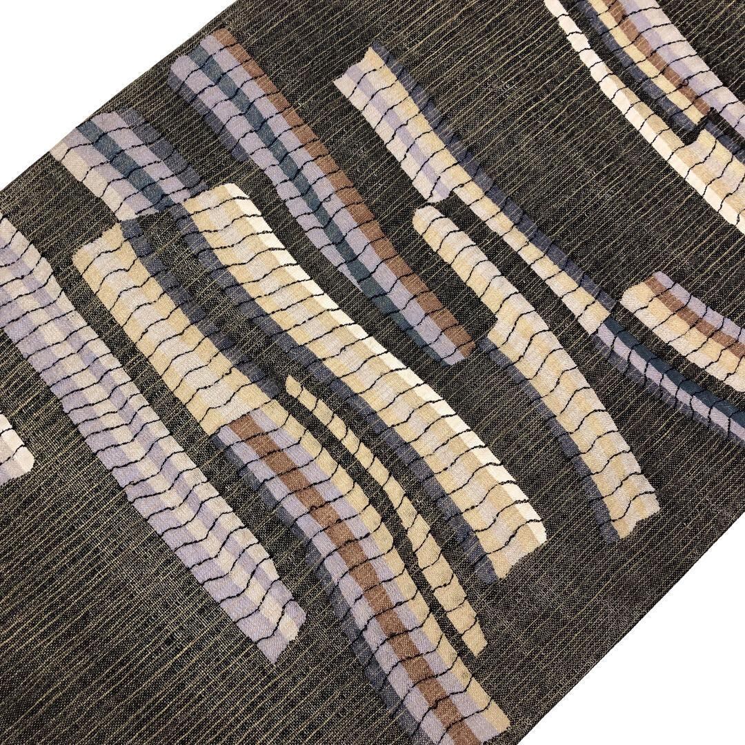 黒色ベースのお色味に抽象織模様の柄裄がデザインされた雰囲気の良い素敵なお品でございます。