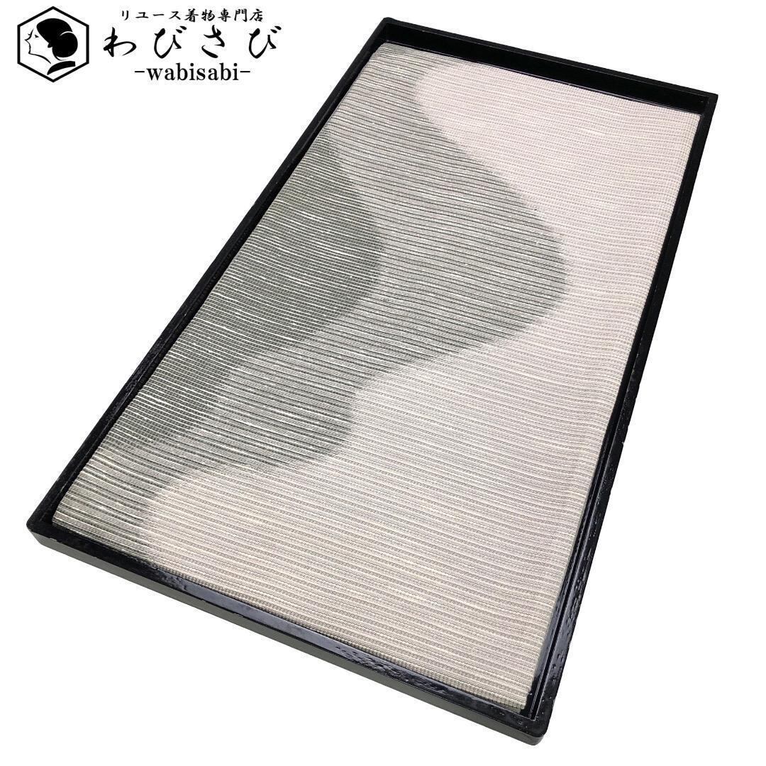 胡粉色ベースのお色味の紬地、抽象模様がデザインされた雰囲気の良い素敵な柄裄のお品でございます。