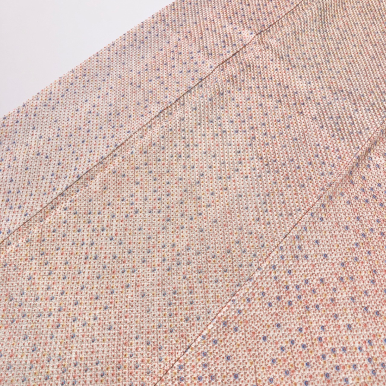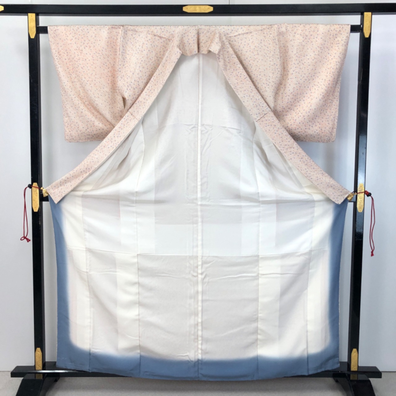 東雲色ベースのお色味の優しい色彩の総絞りの素敵なお品でございます。