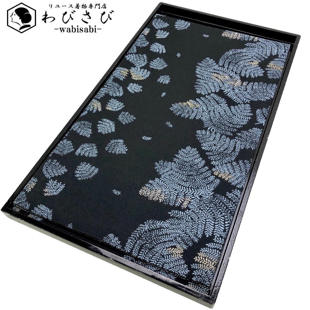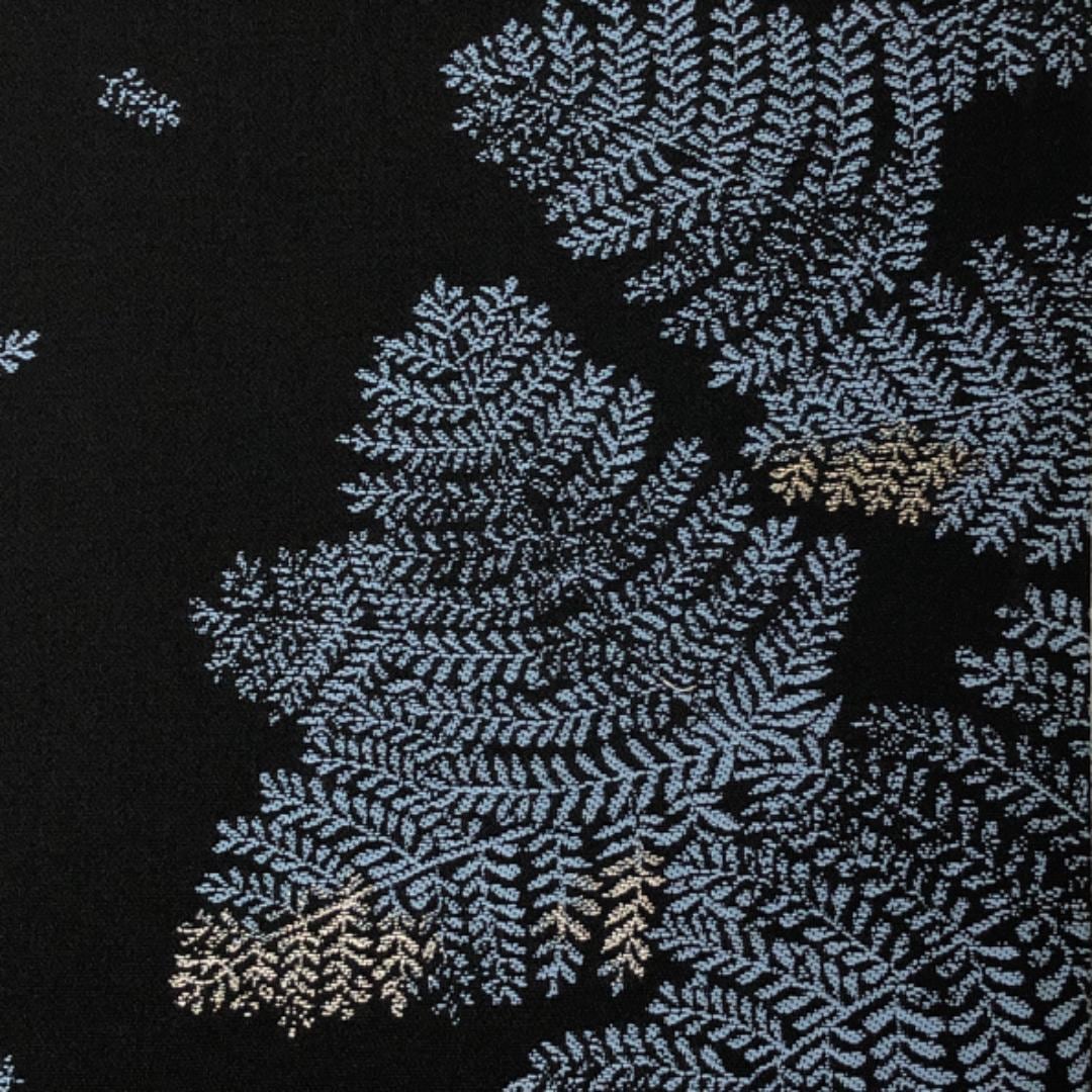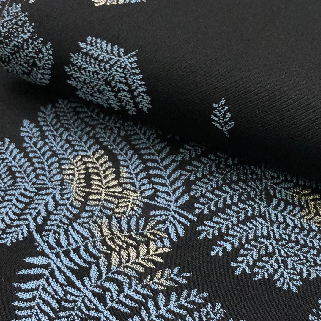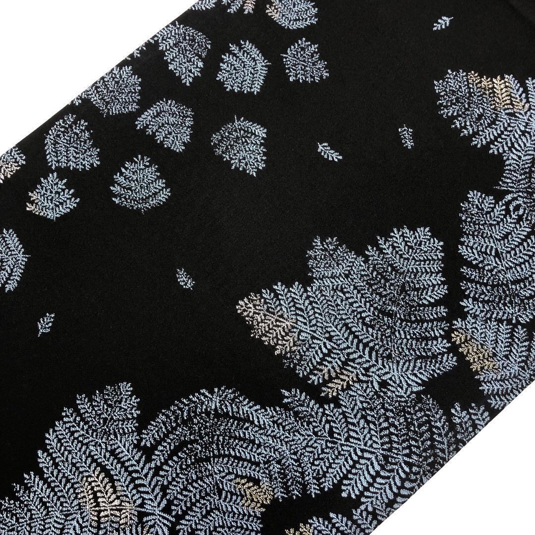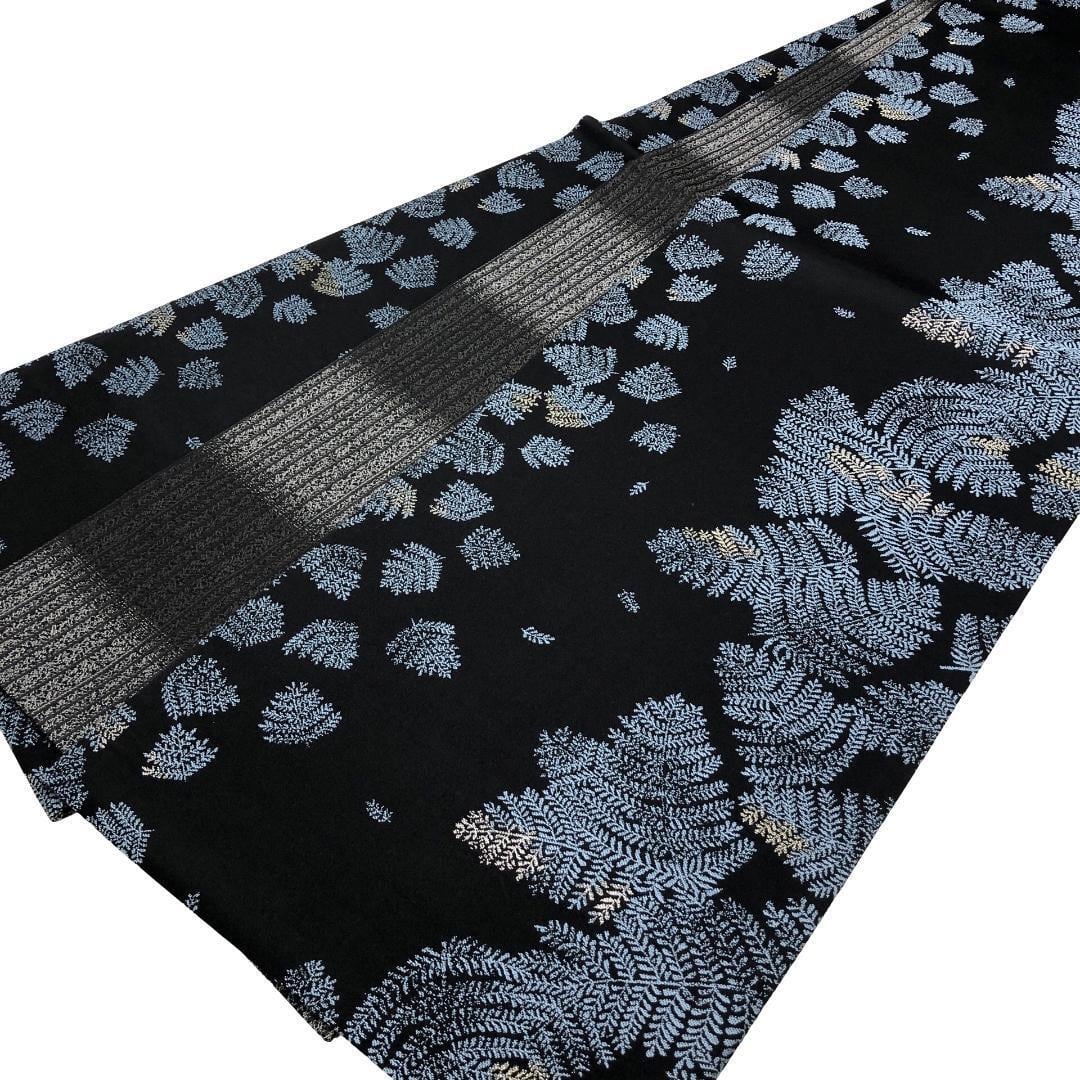 黒色ベースのお色味にモダンな葉模様の柄裄がデザインされた素敵なお品でございます。