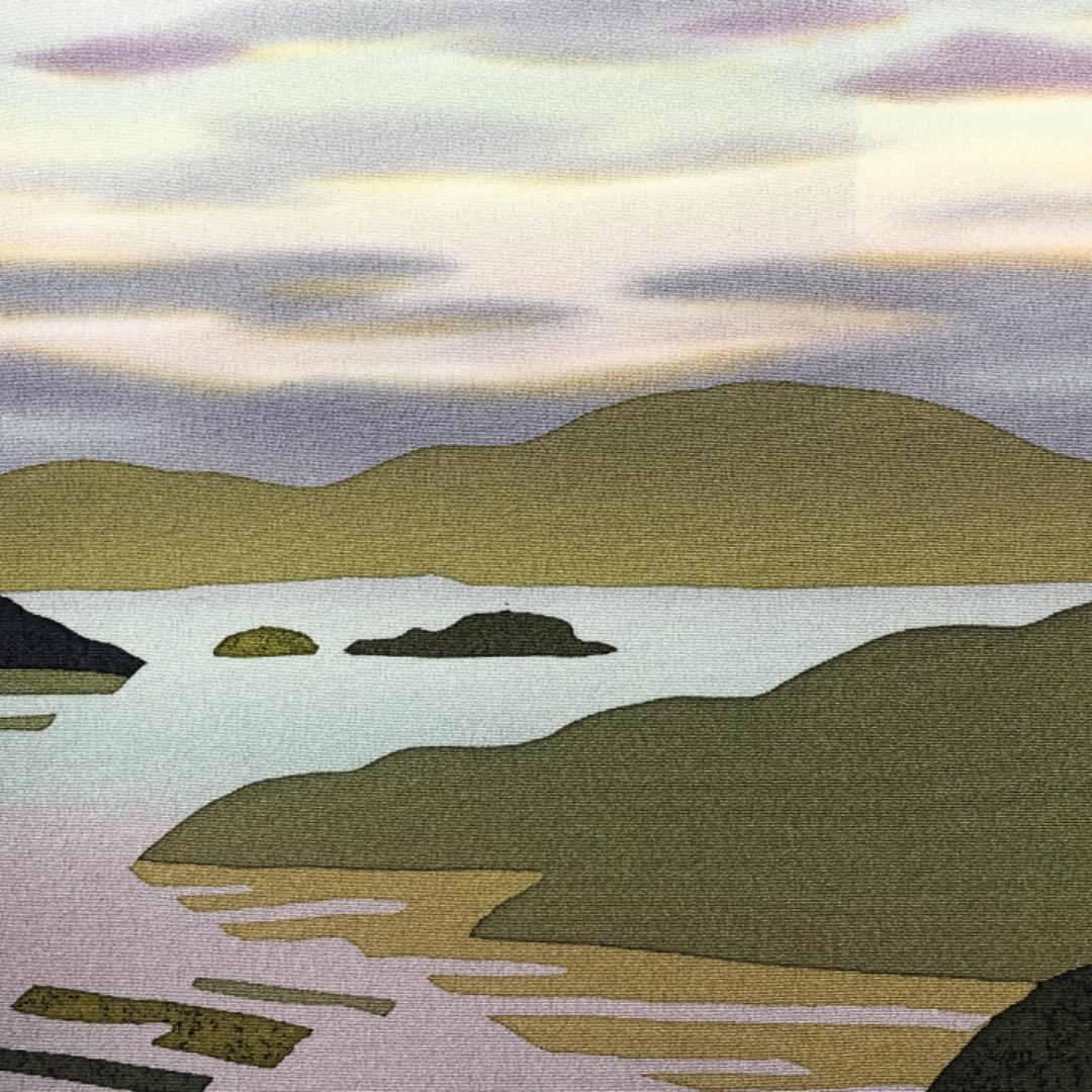 薄鈍色のお色味に遠山模様、風景がデザインされた素敵なお品でございます。