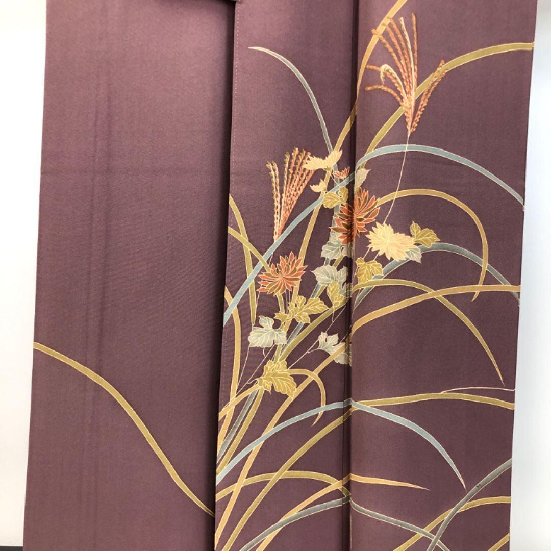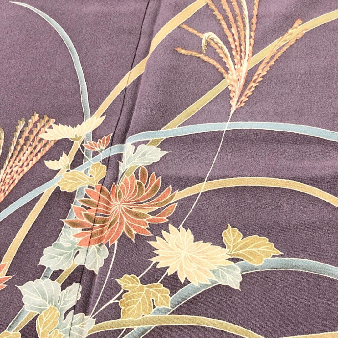 付下げ 秋草模様 染分け 紫鼠色 縮緬 しつけ糸 K-5173 着物 きもの kimono 和服 和装 中古 リサイクル着物 【送料無料】