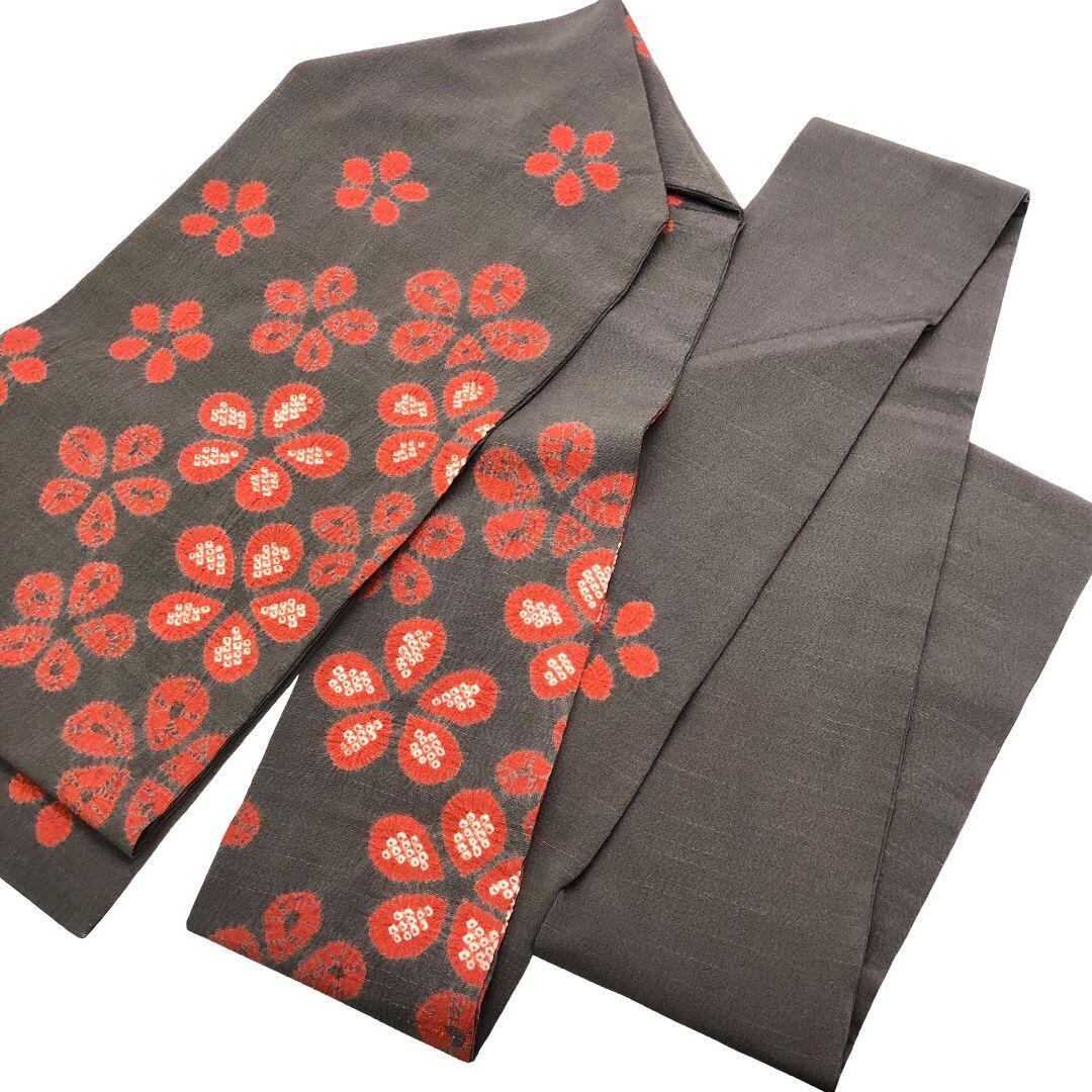 名古屋帯 絞りの花模様 縮緬 紅消鼠色 O-5358 着物 きもの kimono 和服 和装 中古 リサイクル着物 【送料無料】