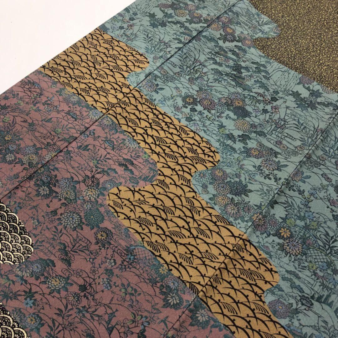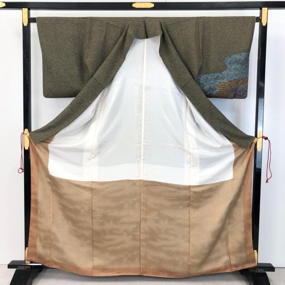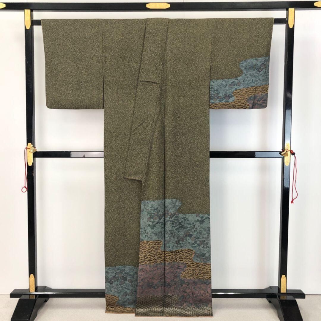 訪問着 伝統工芸伝承者木村正明 霞に草花模様 浅黄色 トールサイズ K-5114 着物 きもの kimono 和服 和装 中古 リサイクル着物 【送料無料】