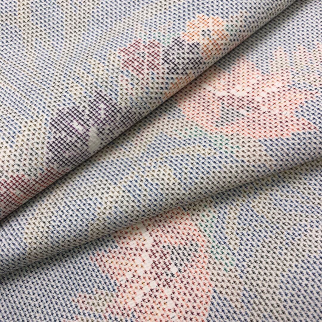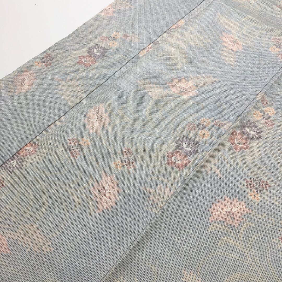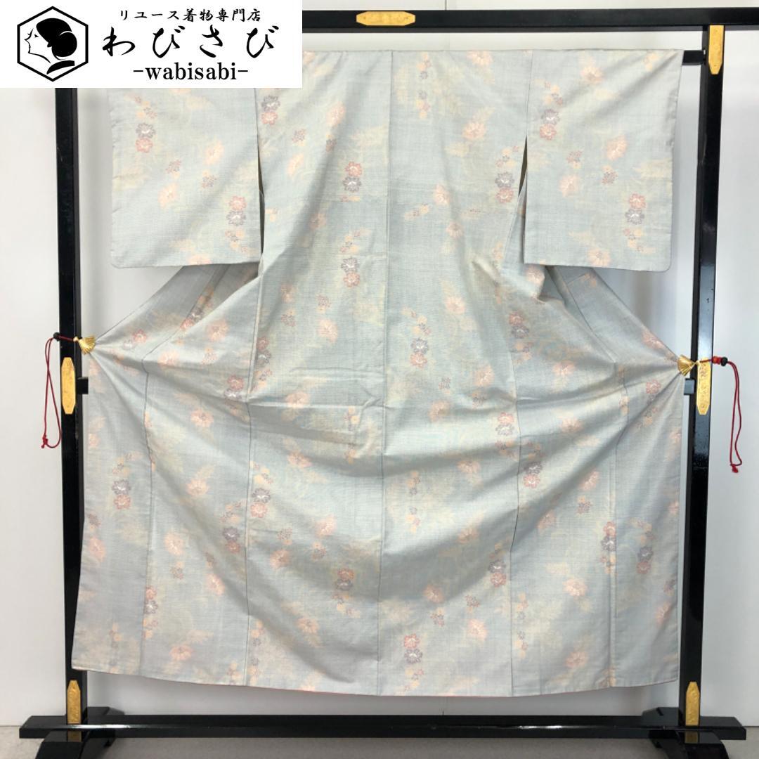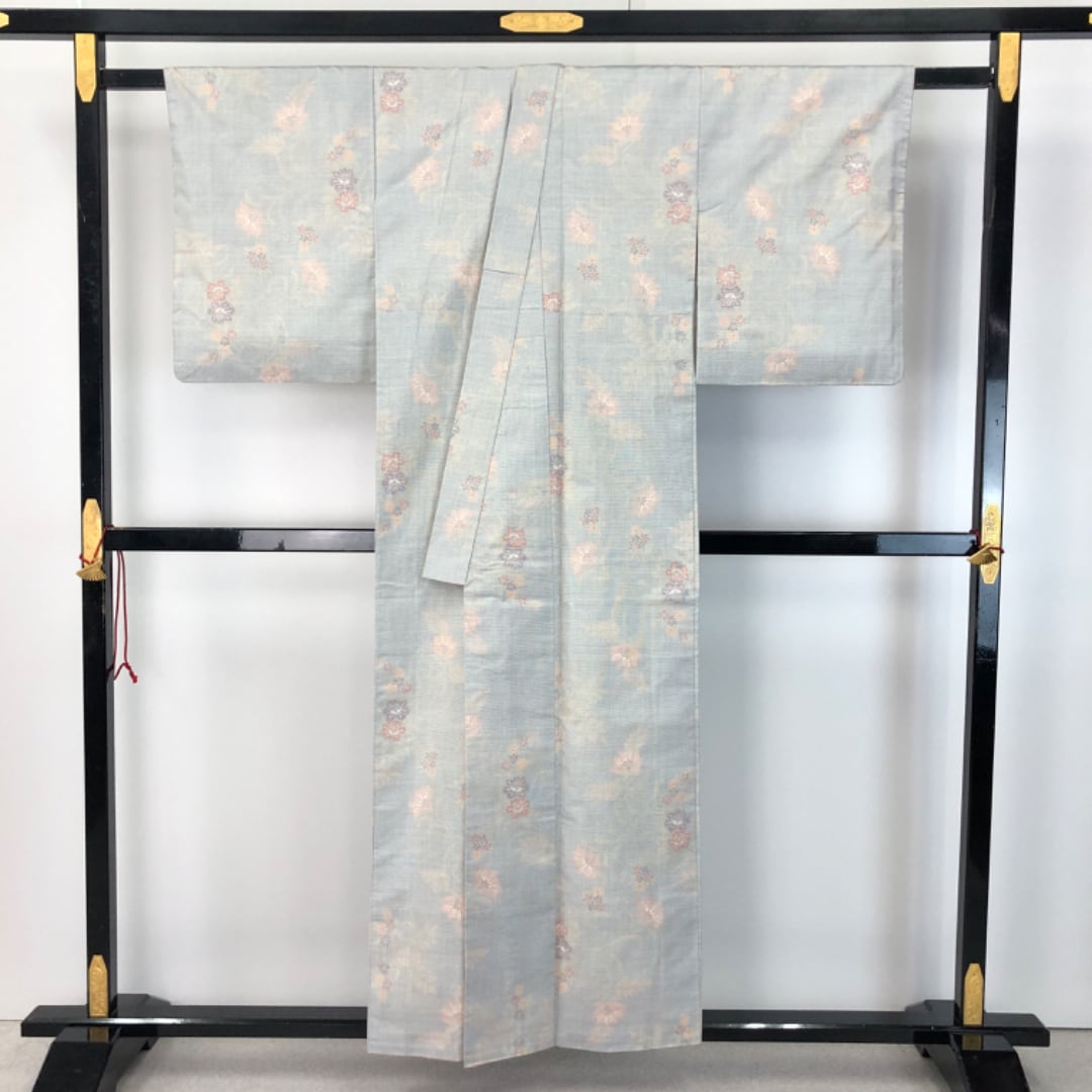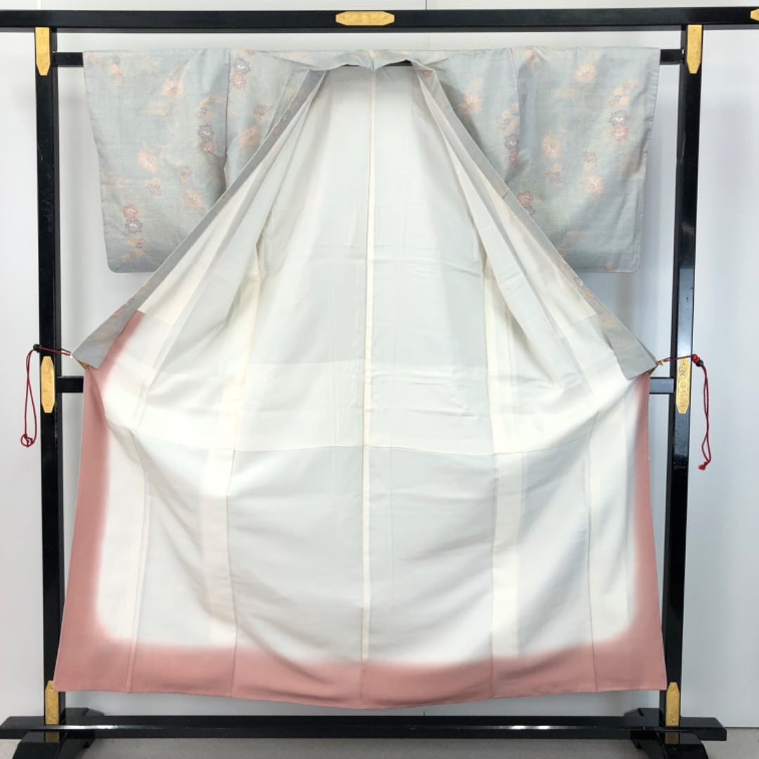 空色鼠ベースの上品なお色味に雰囲気の良い花模様がデザインされた素敵な柄裄のお品でございます。
