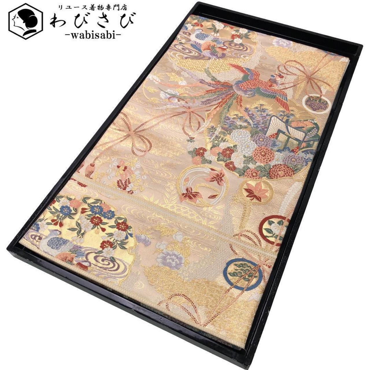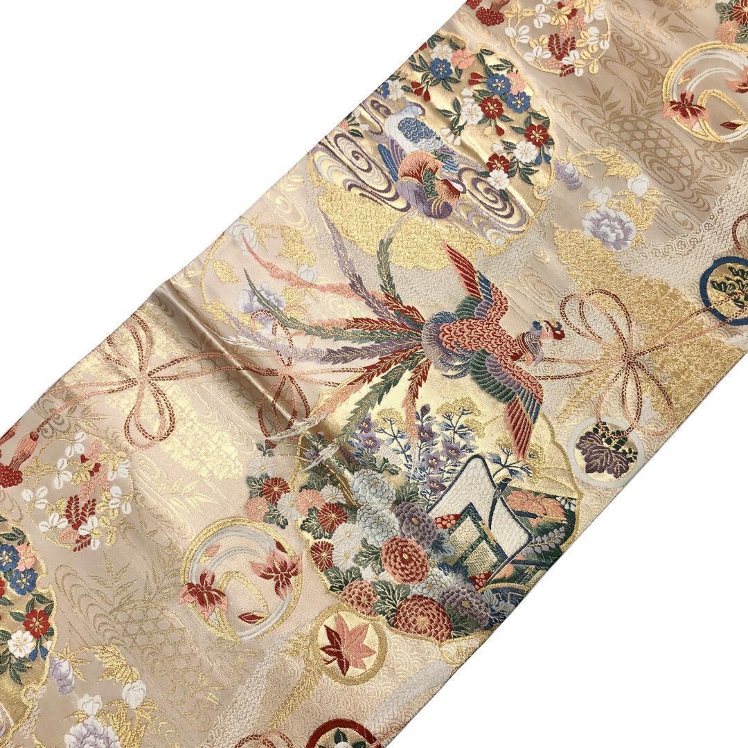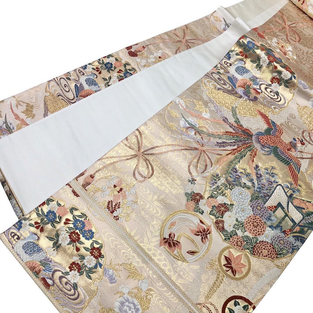 砥粉色ベースのお色味に鳳凰華飾文の柄裄がデザインされた素敵なお品でございます。
