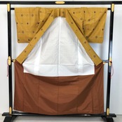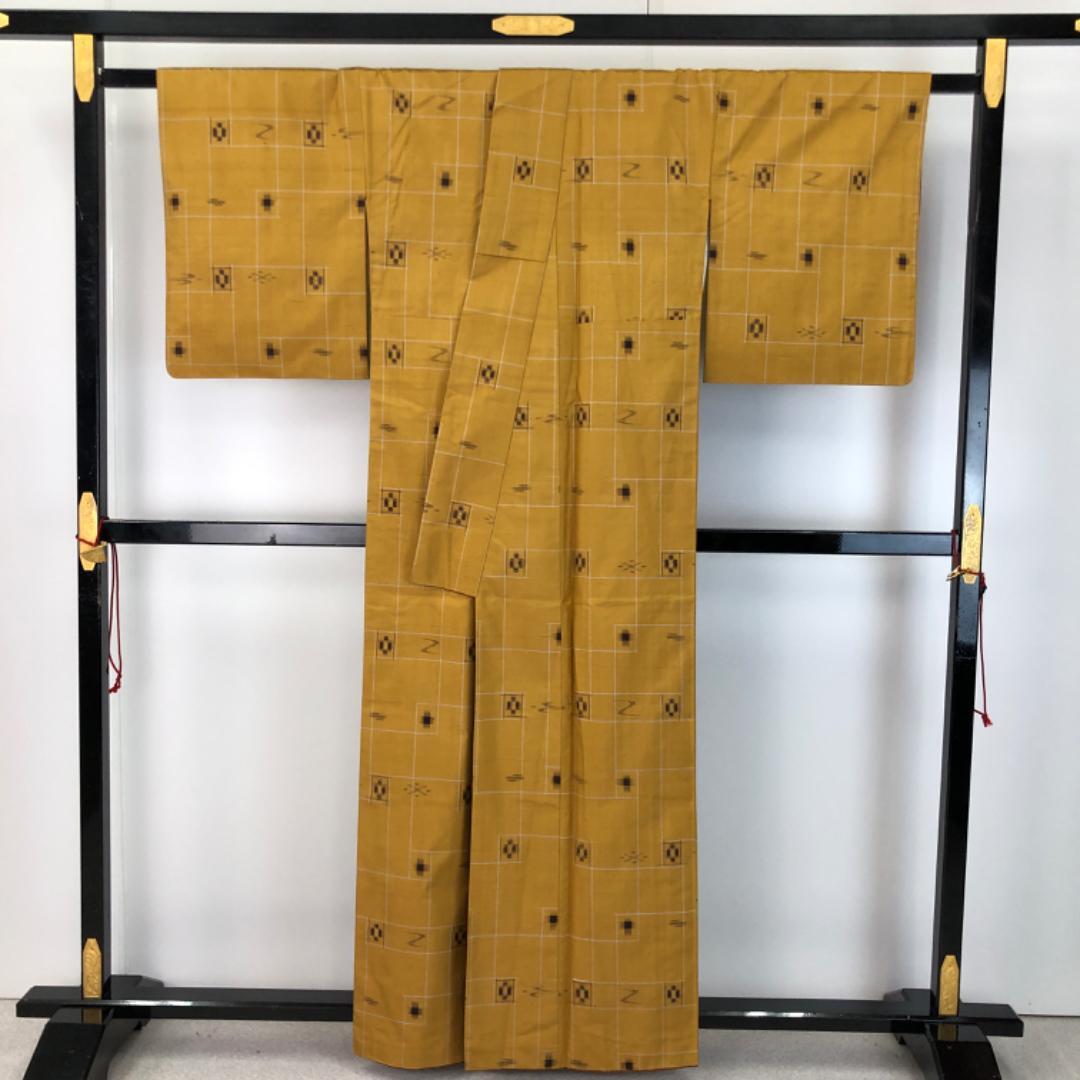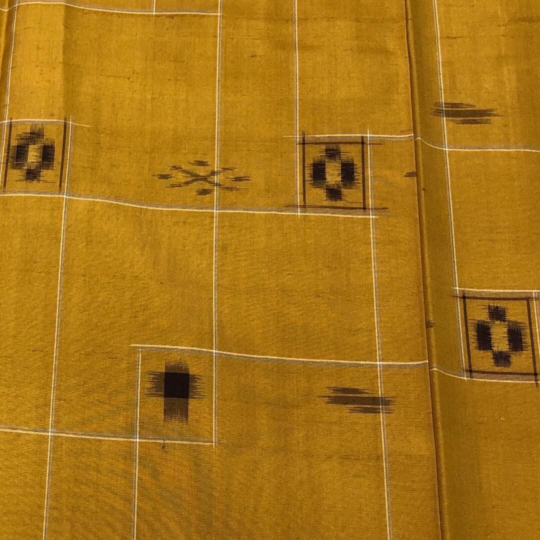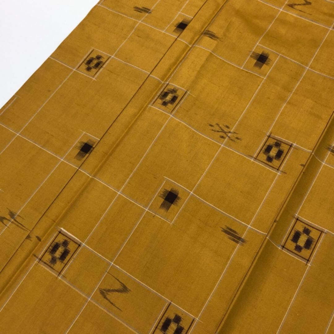 芥子色の雰囲気の良いお色味に琉球柄がデザインされた素敵なお品でございます。