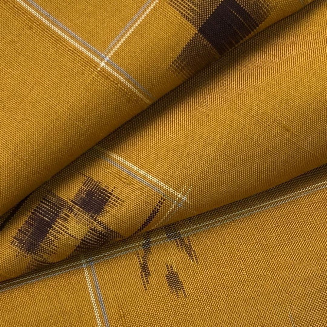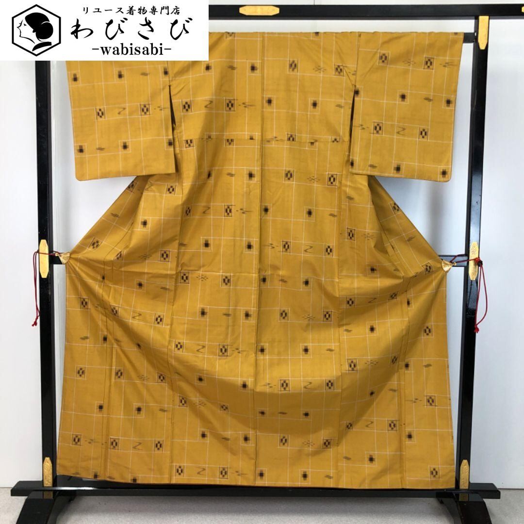 紬着物 本場琉球絣 絣模様 琉球柄 芥子色 K-5226 着物 きもの kimono 和服 和装 中古 リサイクル着物 【送料無料】